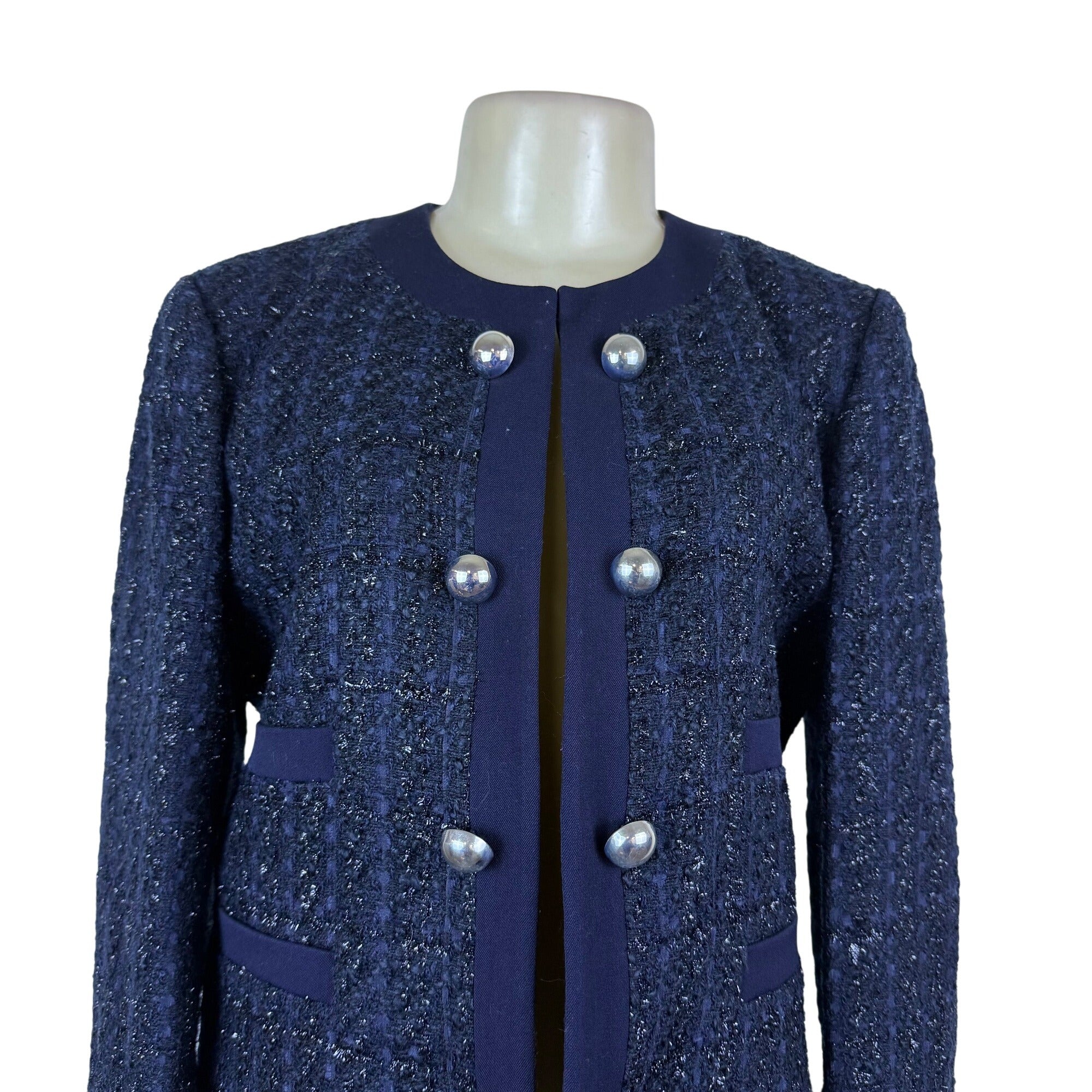 Jones New York Women’s Navy Tweed Blazer W/ Button Accents Size 10