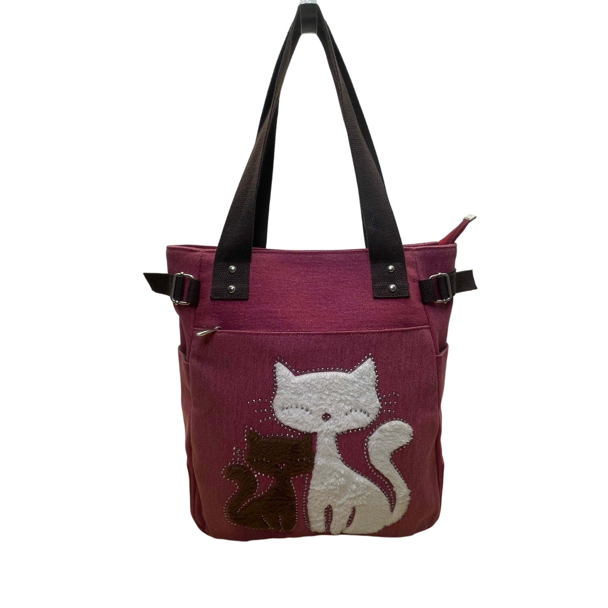 Kaukko Women’s Purple Canvas With Cat Design & Side Adjustable Straps Tote Bag