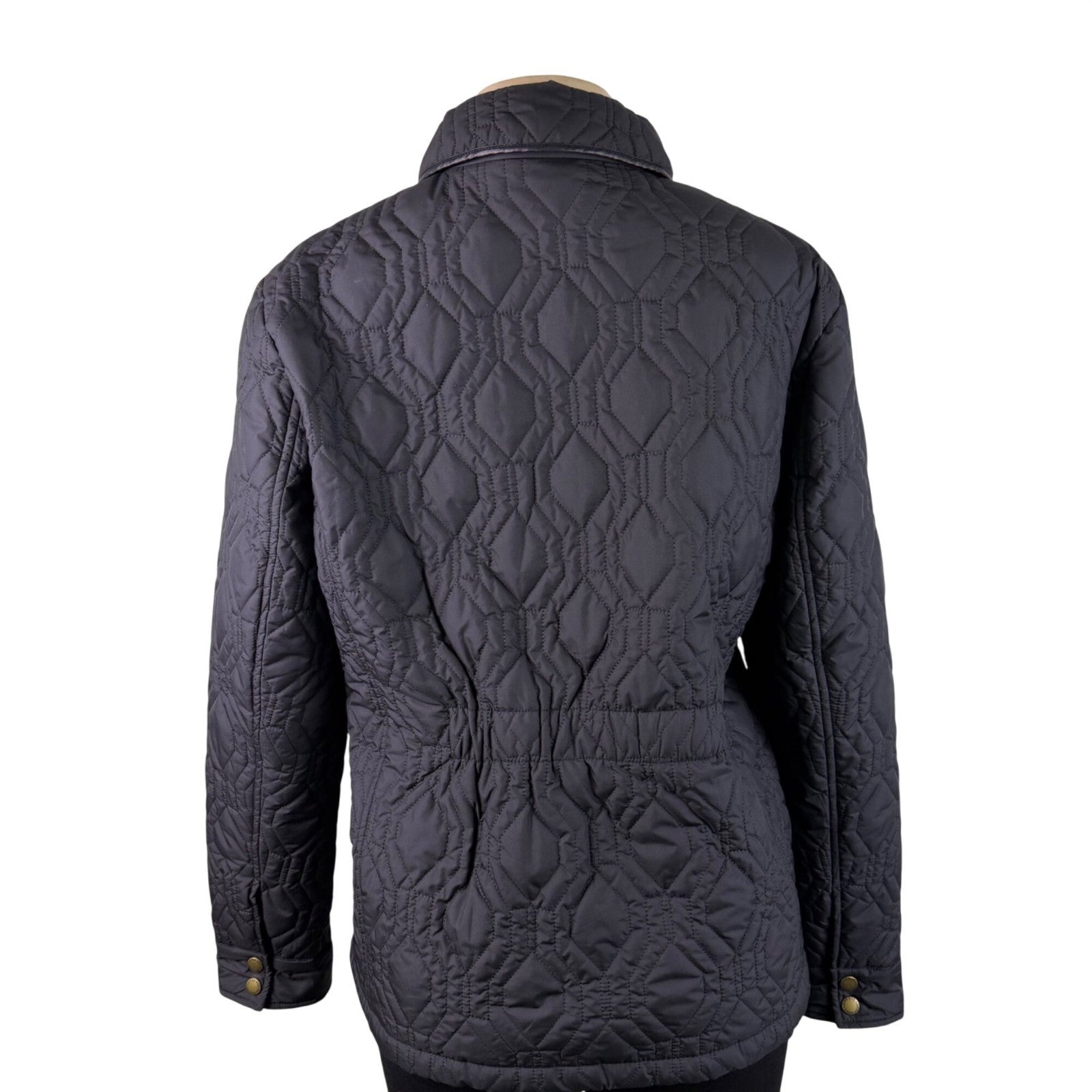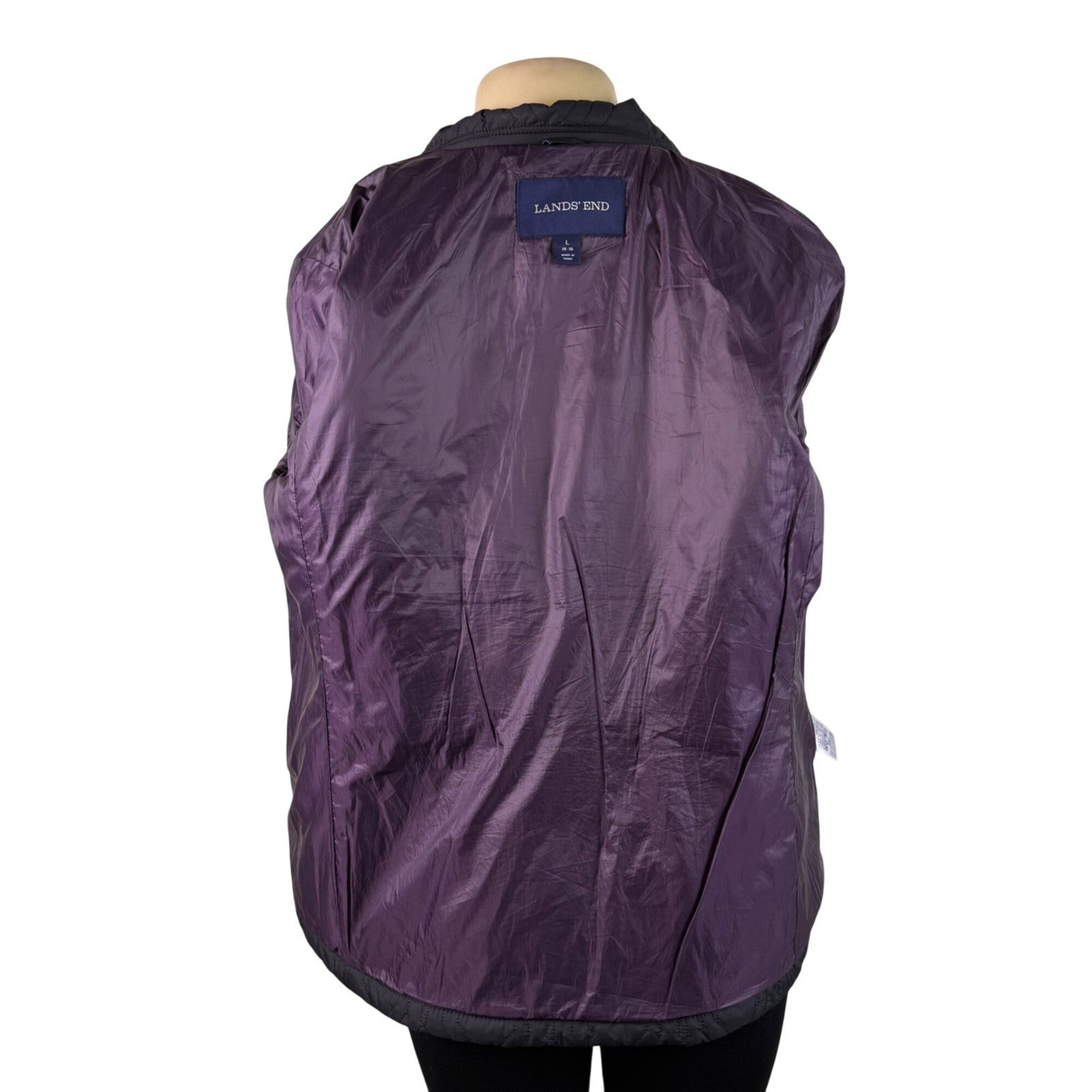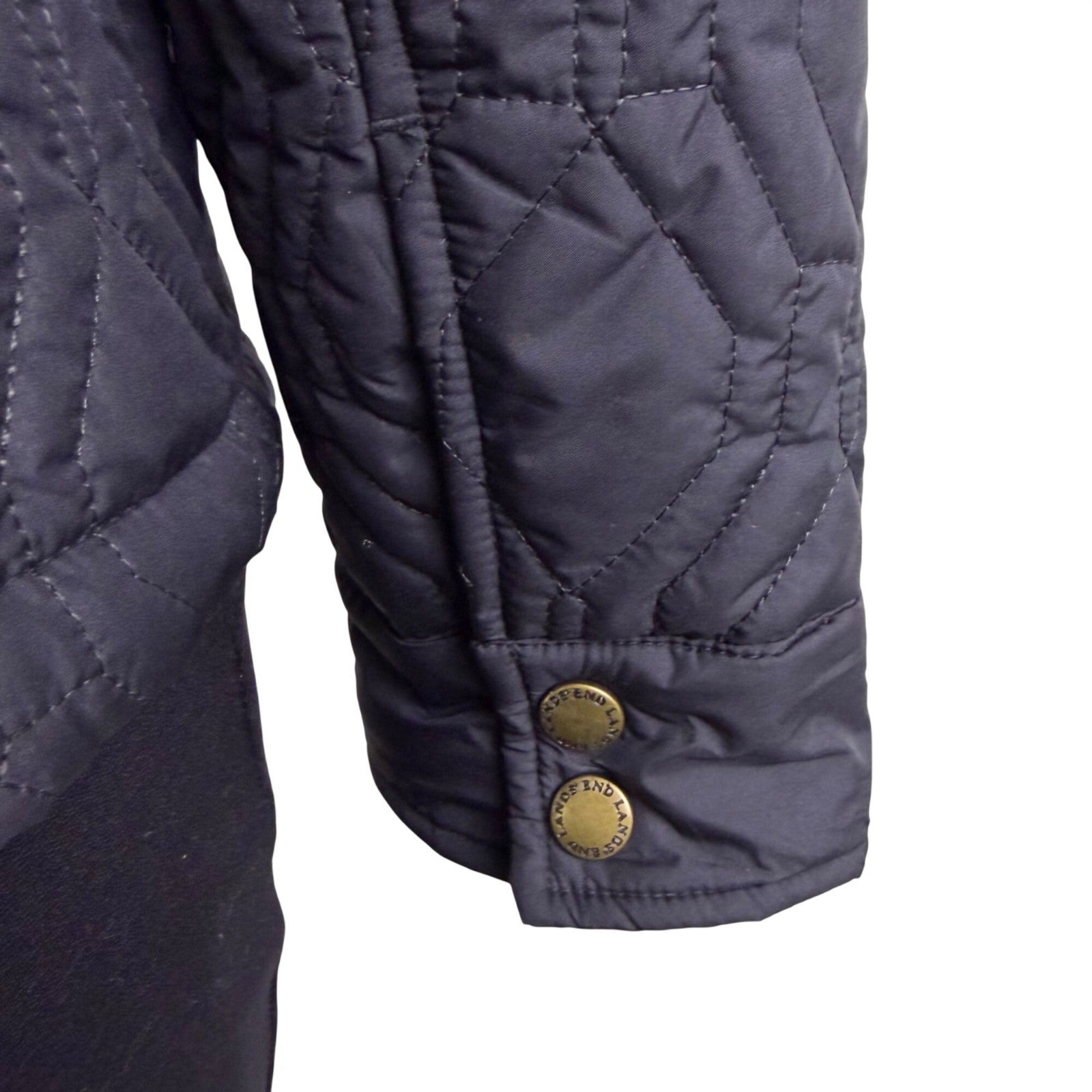 Lands End Womens Black Quilted Jacket Polyester Snap Closure Puffer Coat Size L