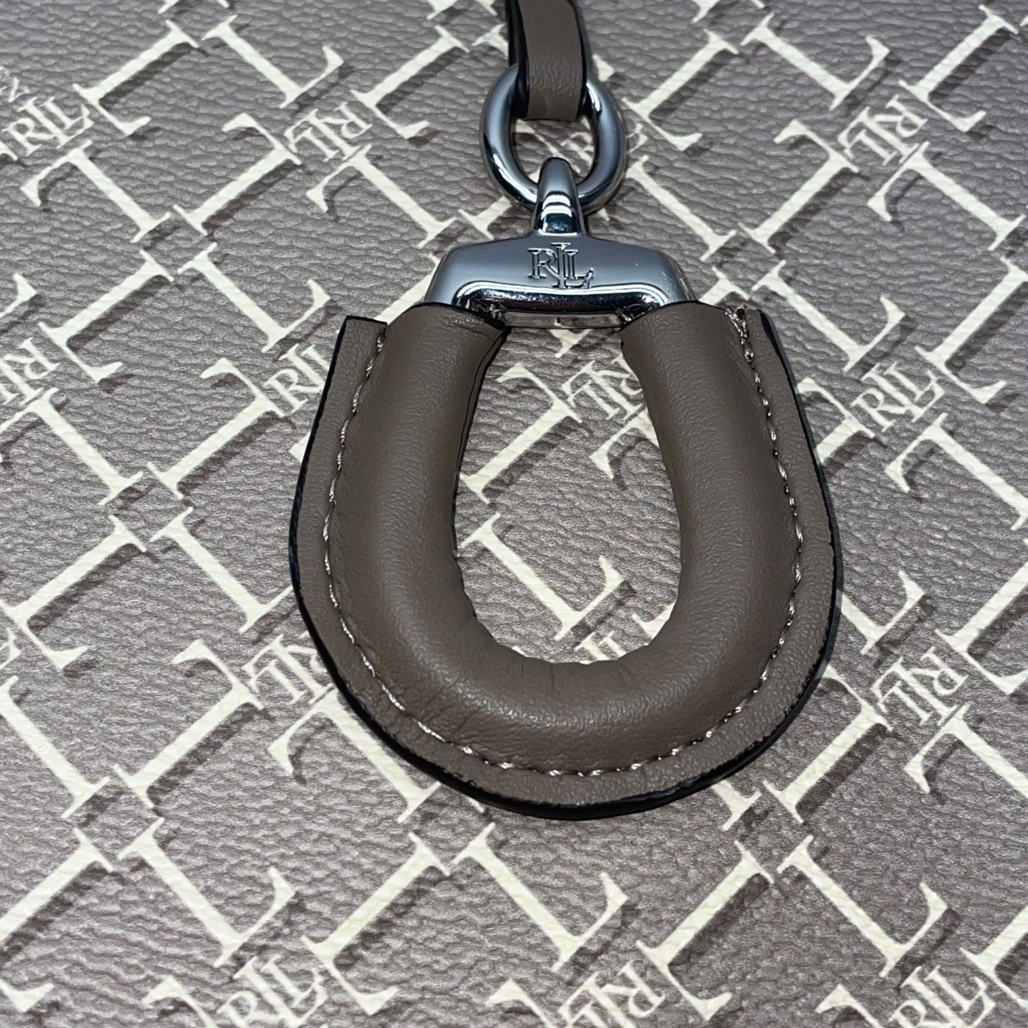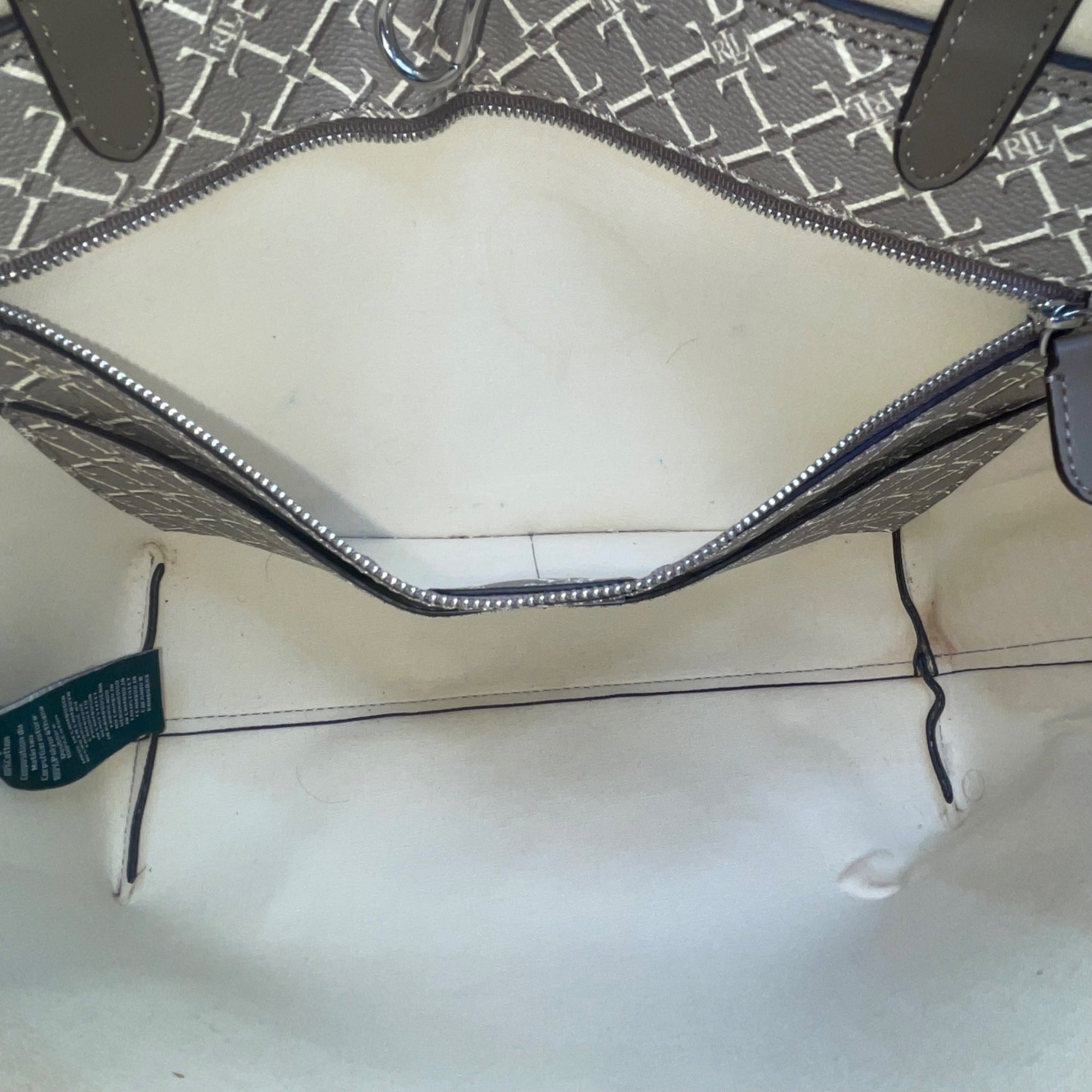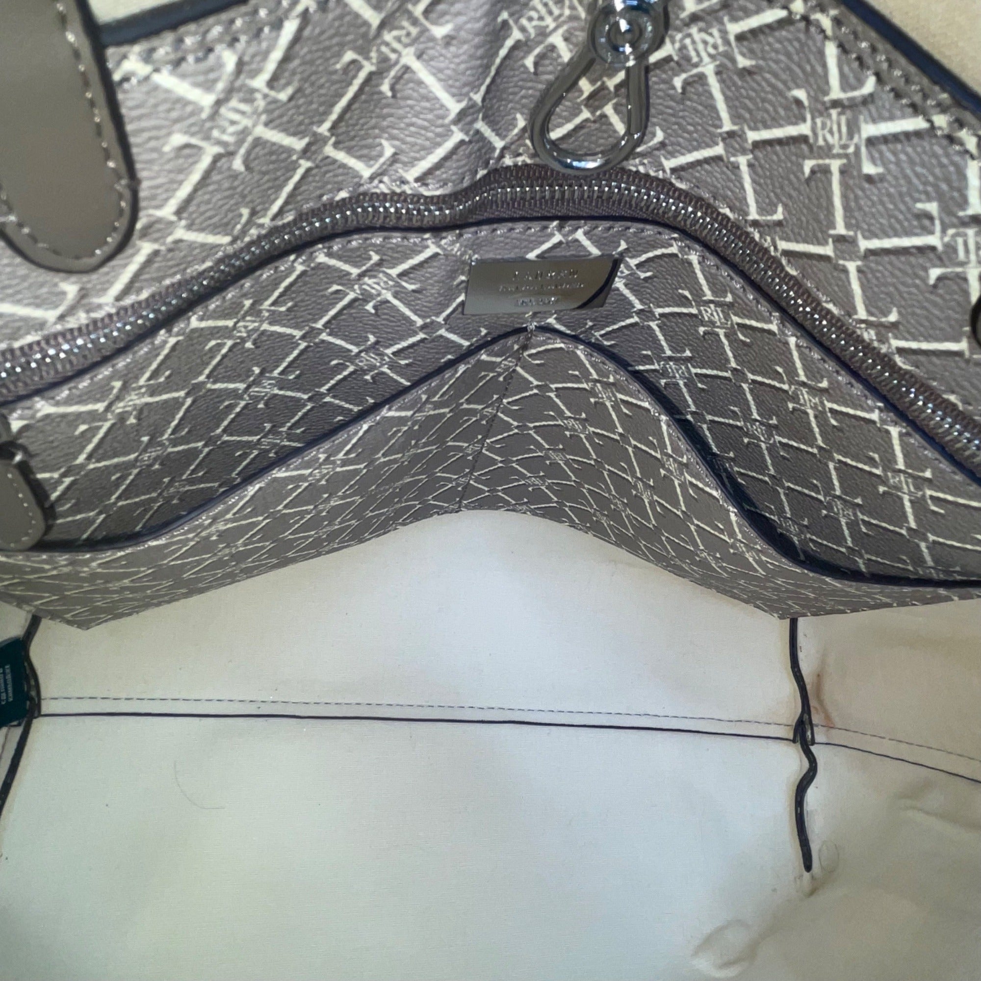 Lauren Ralph Lauren Women’s Gray Monogram Faux Leather Shoulder Straps Tote Bag