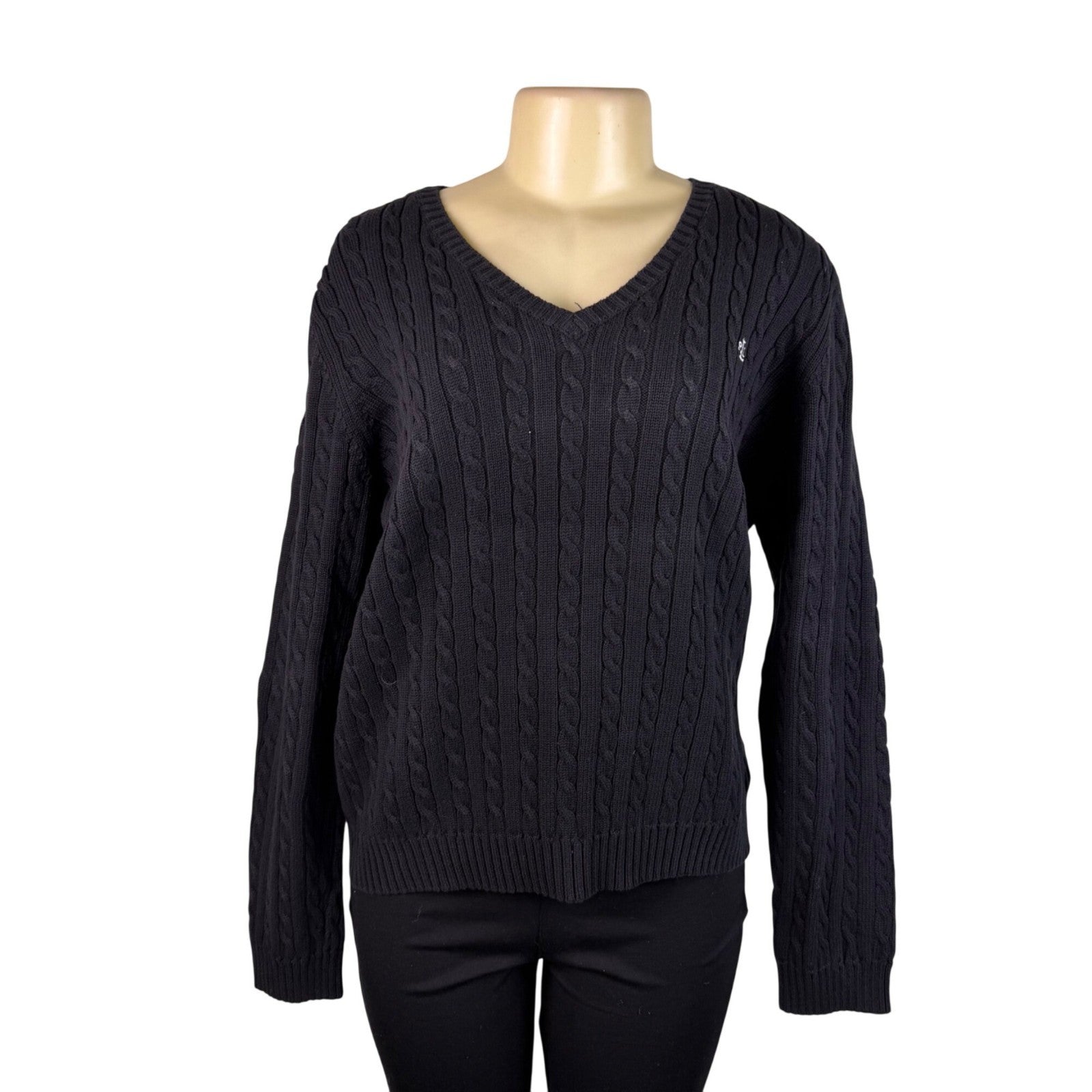 Lauren Ralph Lauren Womens Black Cotton Cable Knit V-Neck Sweater Sz XL
