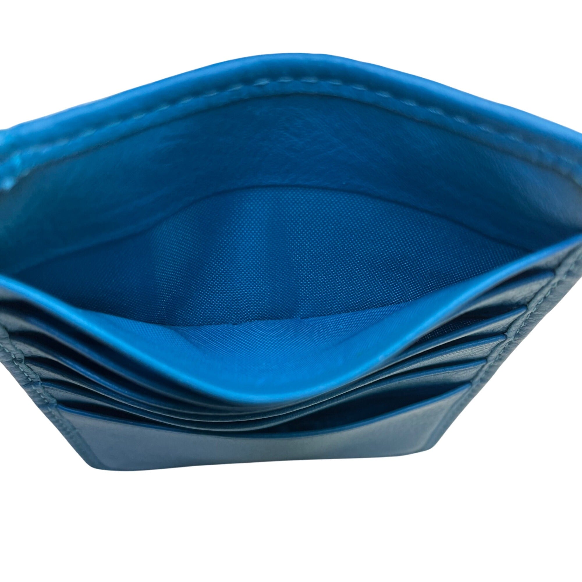 Lodis Women’s Teal Leather RFID Slim Wallet Card Holder With Zipper Pocket