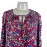 Lucky Brand Women's Maroon Floral Boho Peasant Long Sleeve Top Sz XL