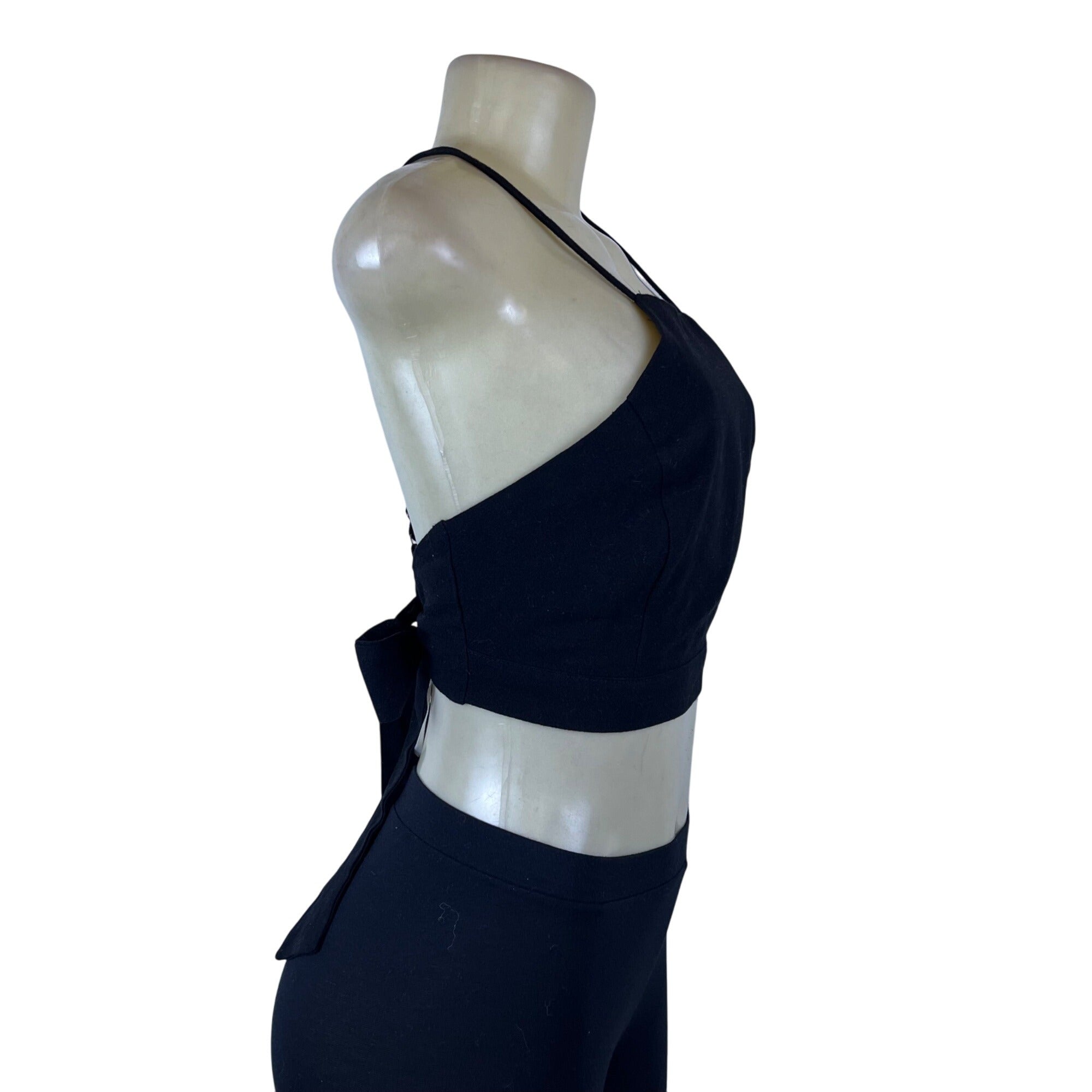 Lulus Women's Black Cotton Linen Bow Back Strappy Crop Top Size S - New
