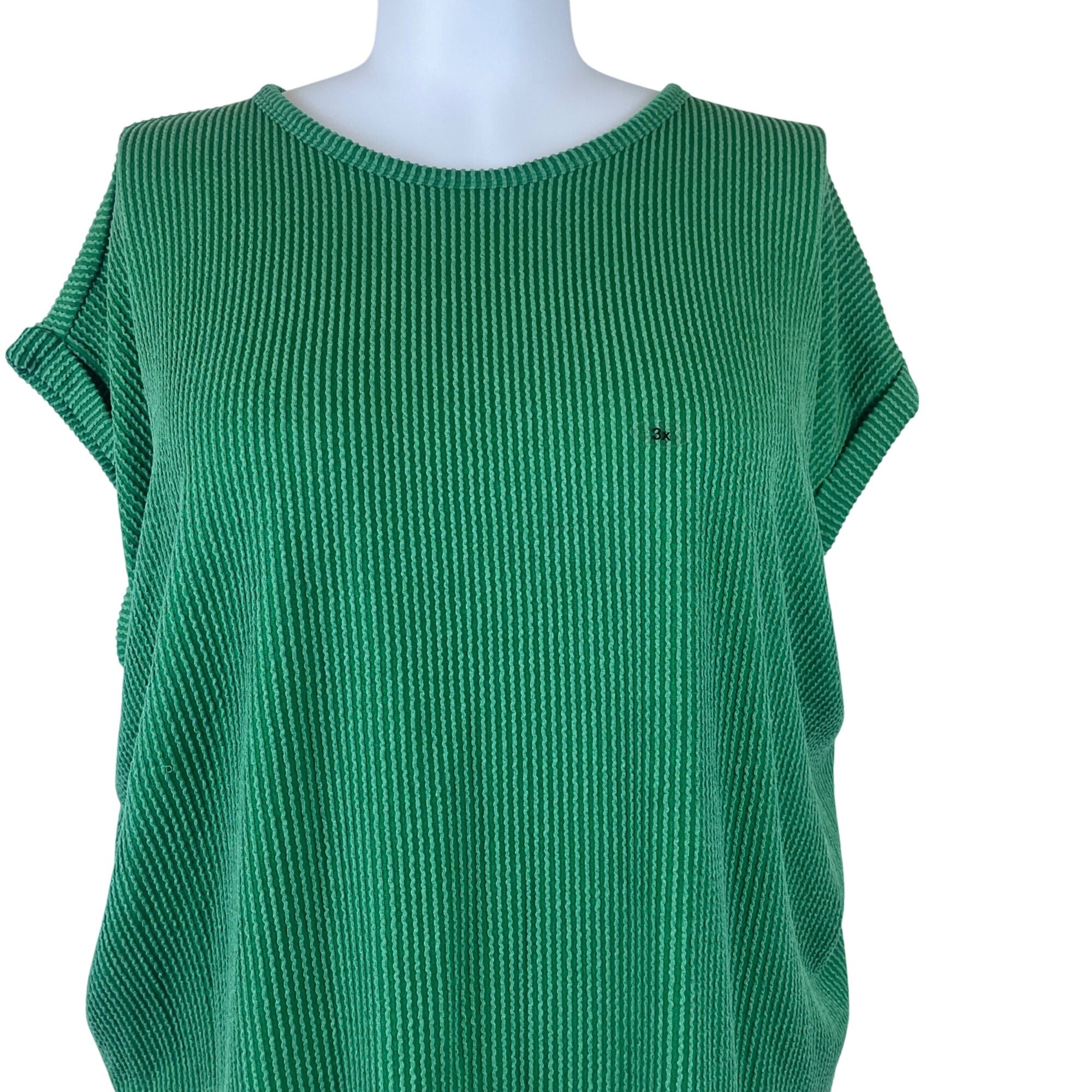 Maurices Women’s Green Ribbed Knit Short Sleeve Top Relaxed Fit Size 3x - New
