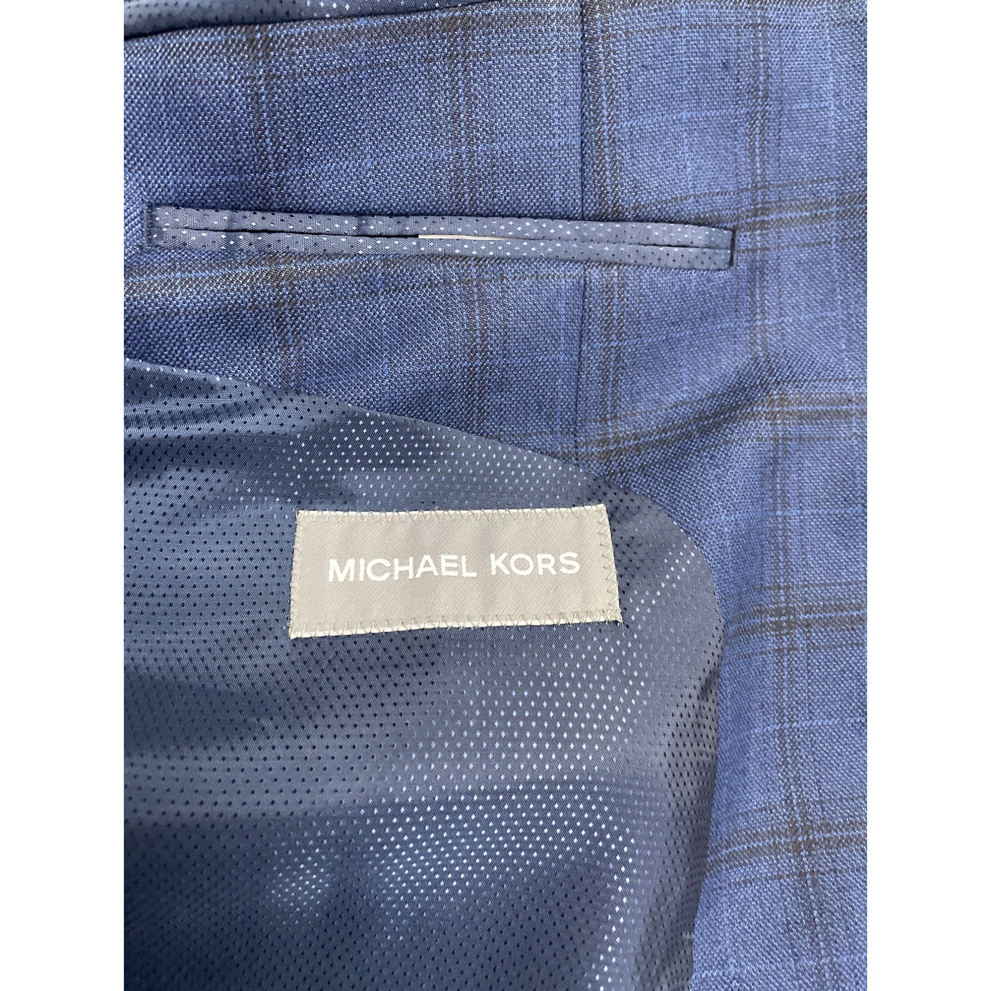 Michael Kors Mens Blue Plaid Polyester Rayon Blazer Jacket 44L 2-Button
