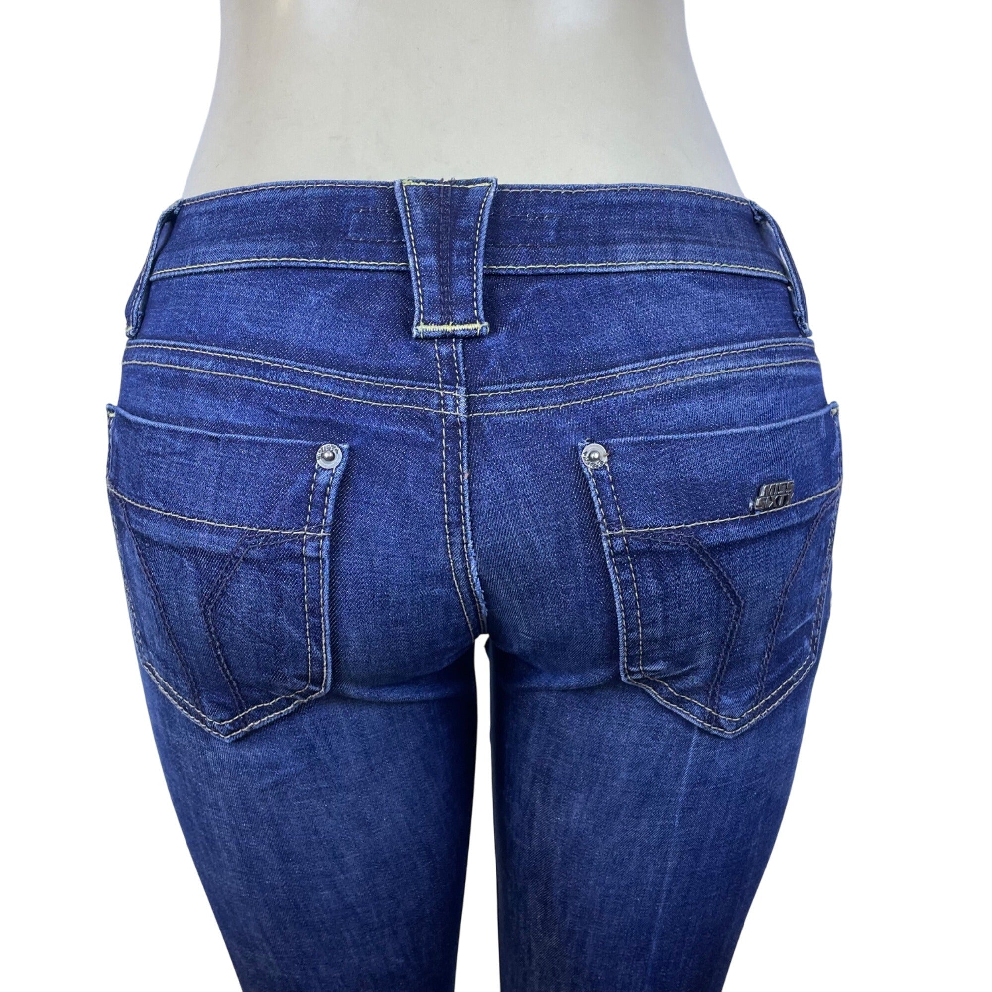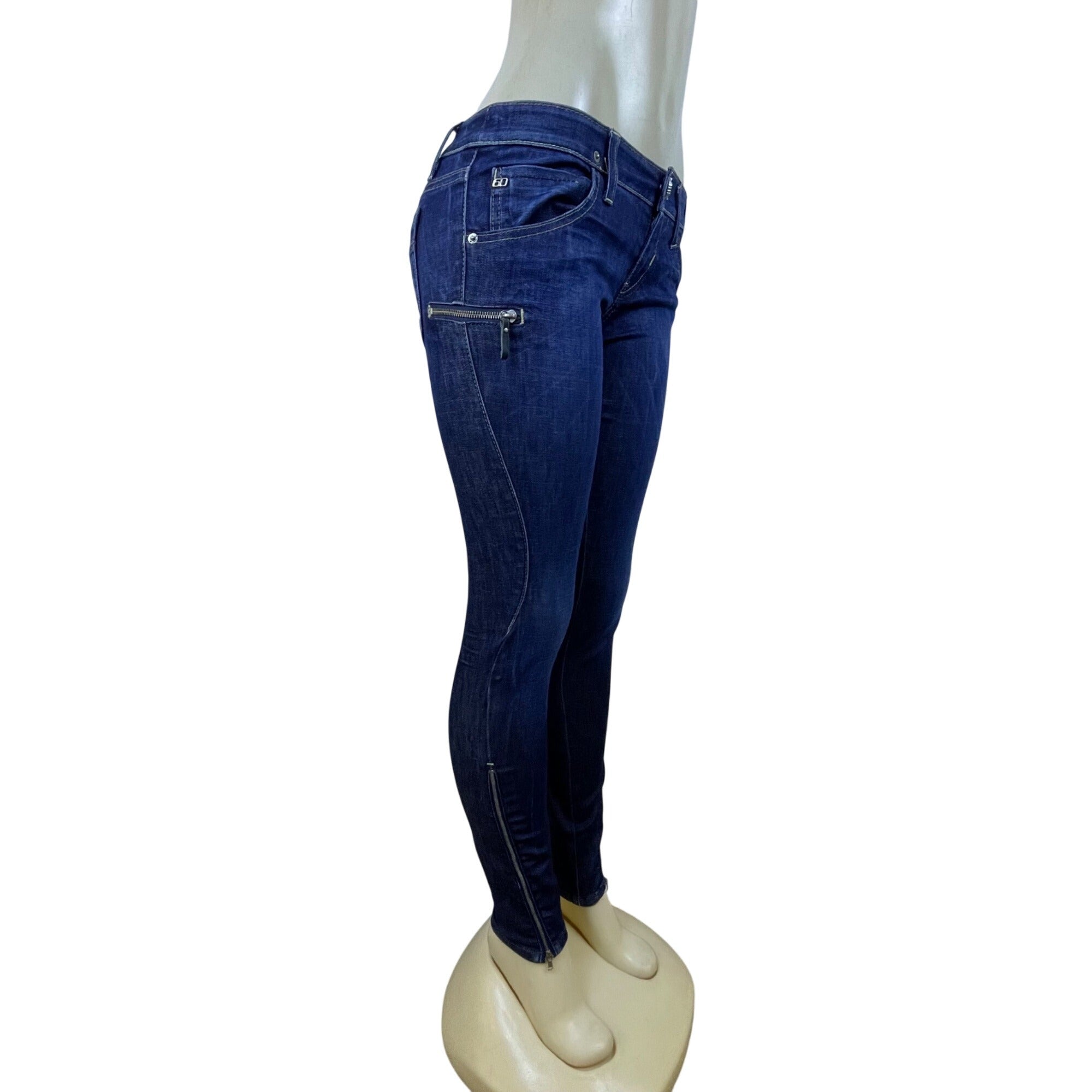 Miss Sixty Dark Wash Cotton/Elastane Skinny Jeans Trendy Zip Accents Sz 28