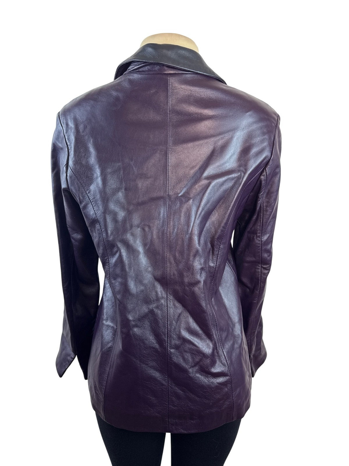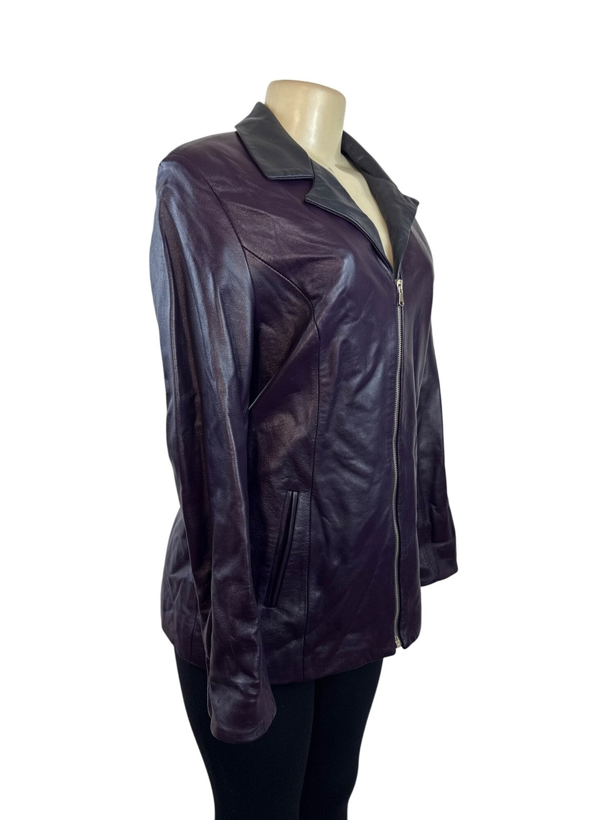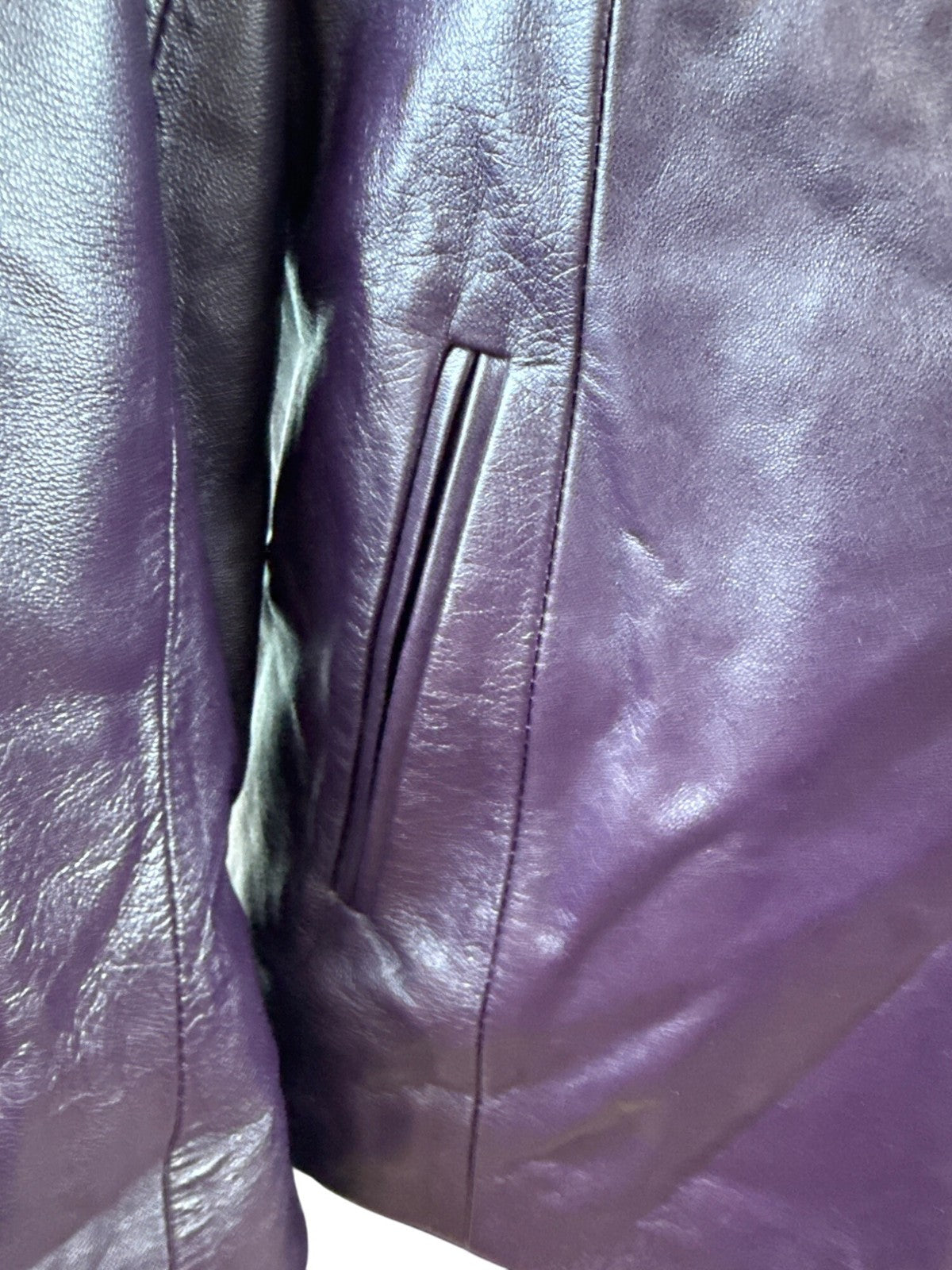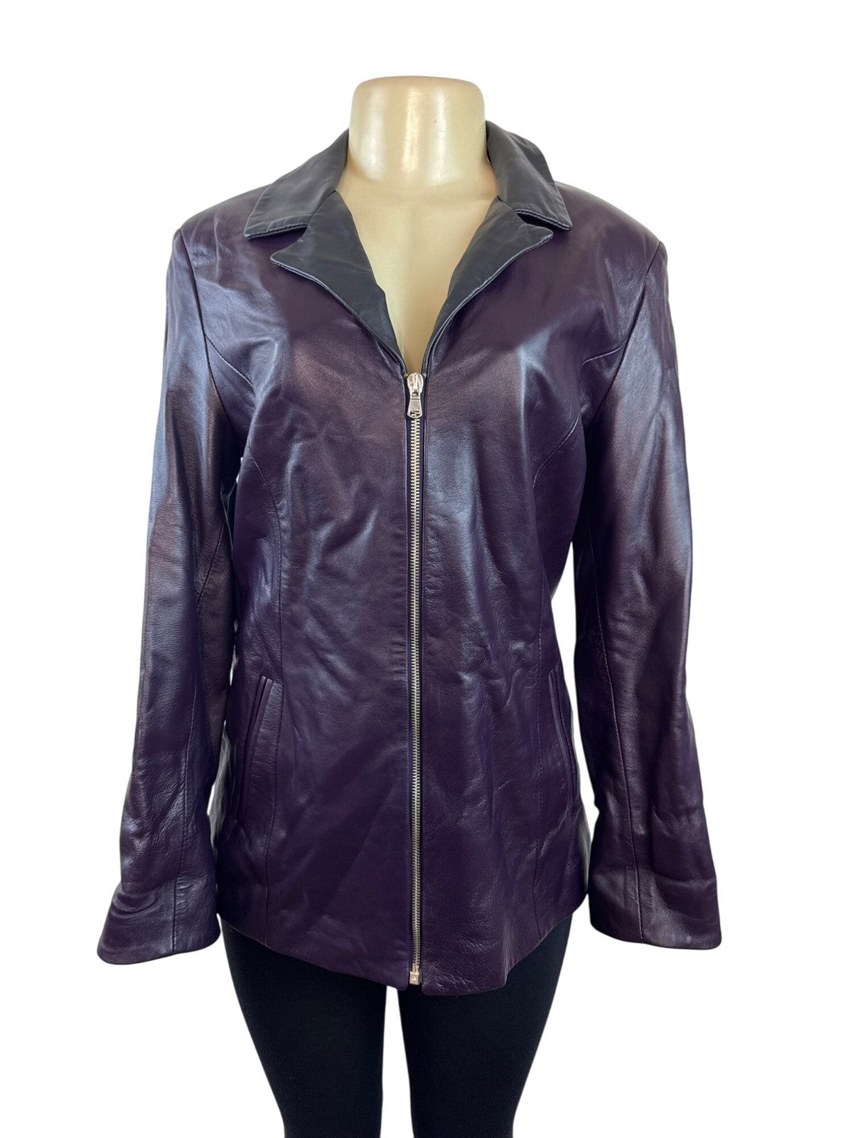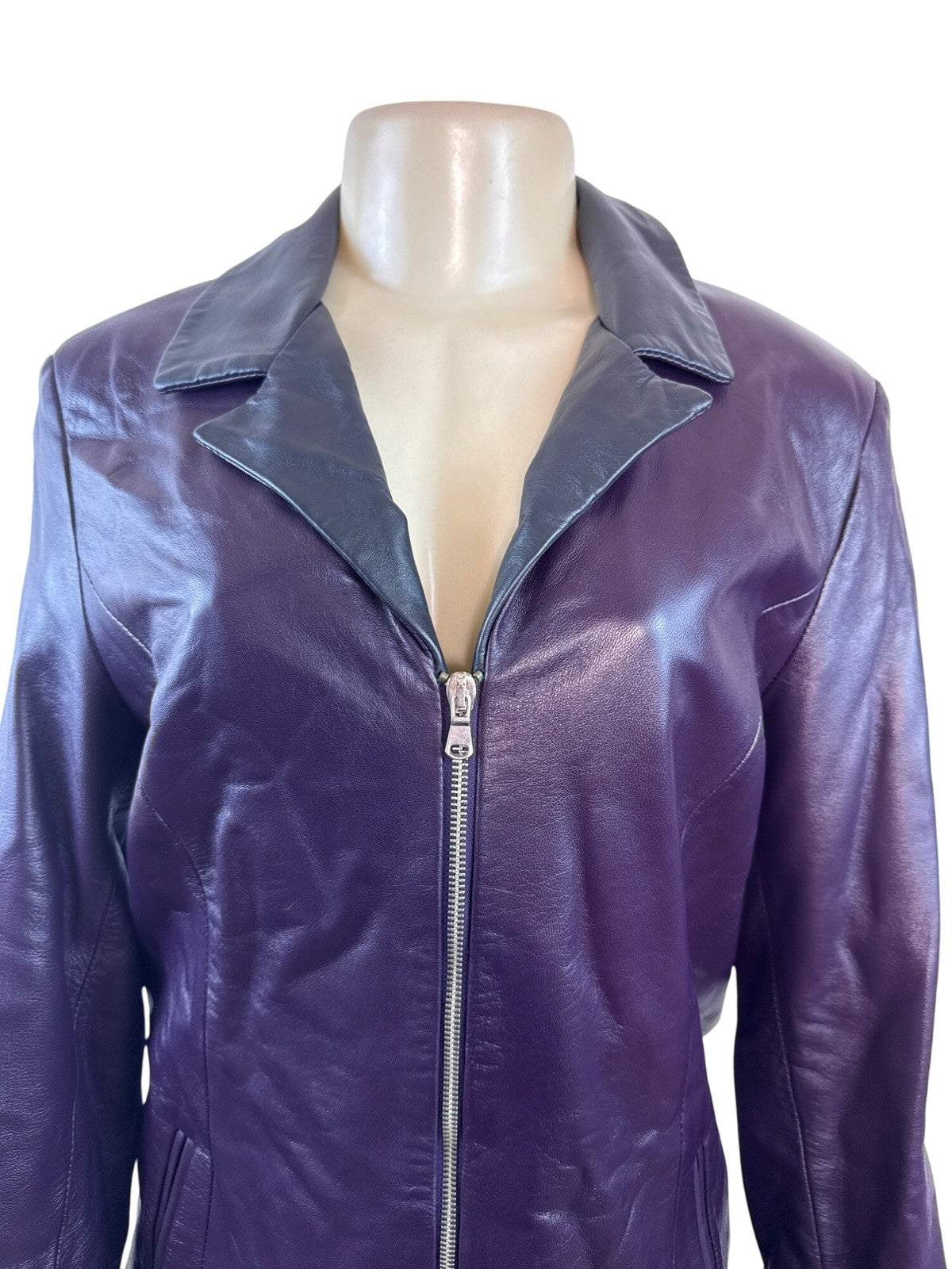 Pierotucci Womens Purple Leather Jacket With Zipper Closure Size 42