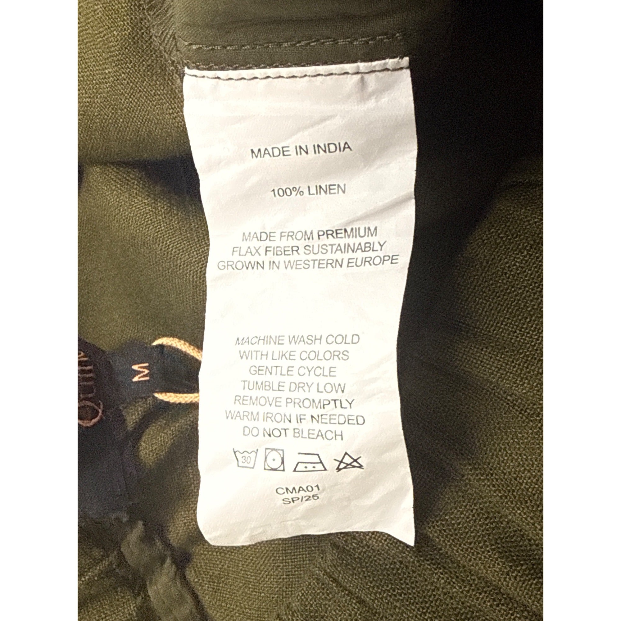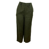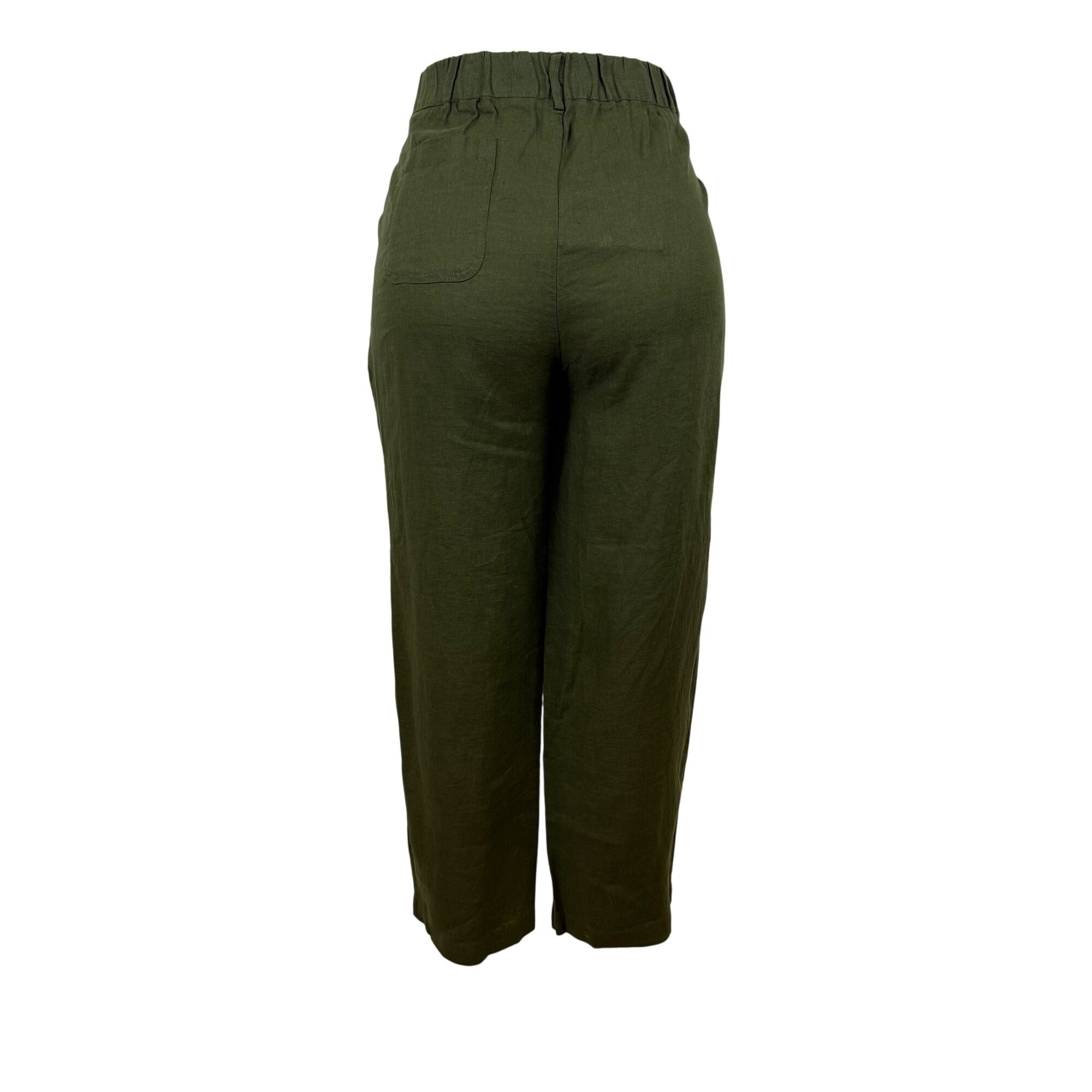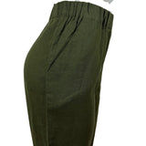Quince Women's Olive Linen Pants High-Rise Elastic Waist Relaxed Fit Cropped Size M. Lightweight, breathable material for comfortable wear. Features an elastic waistband for adjustable fit and a single back pocket. Ideal for casual style. Brand new with tags attached.