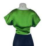 Rachel Zoe Women's Green Satin Twist-Front Blouse Short Sleeves S - New