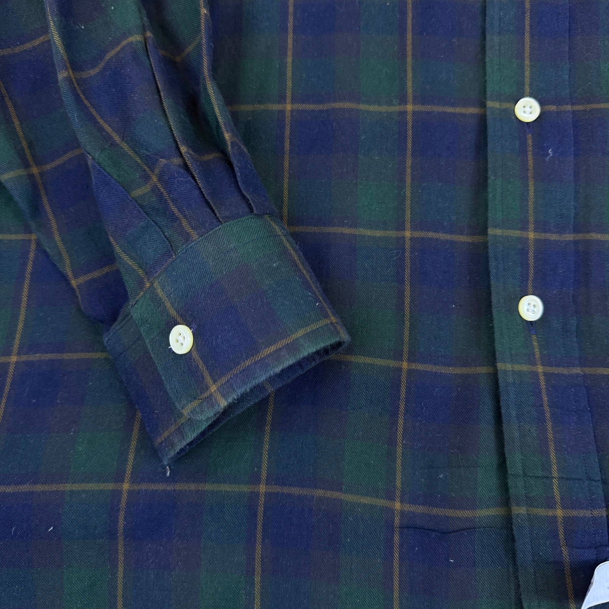 Ralph Lauren Mens Green/Blue Cotton Plaid Long Sleeve Button-Down Shirt Size L