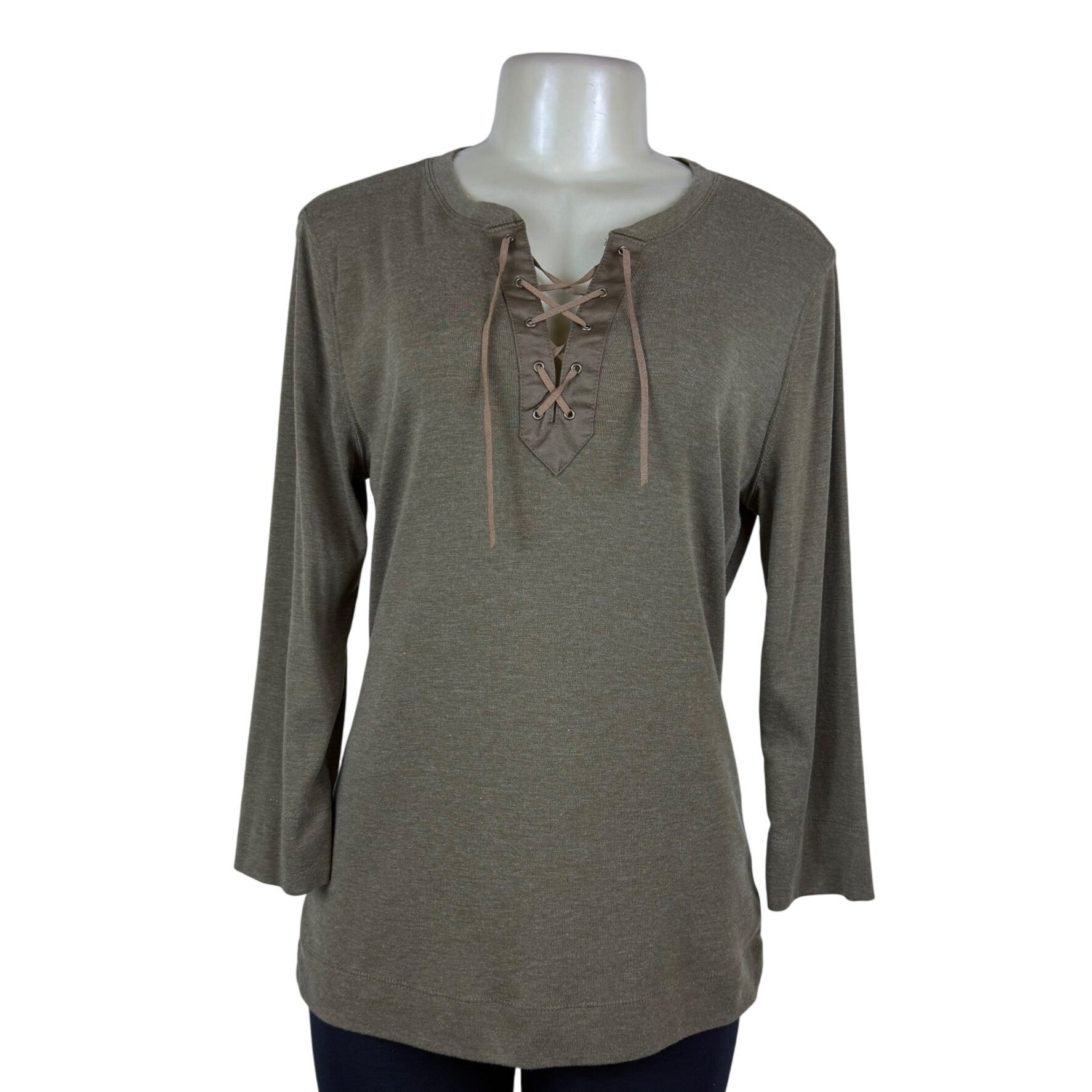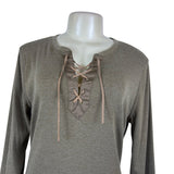 Ralph Lauren Women's Olive Cotton Blend Lace-Up Long-Sleeve Shirt Size L - New