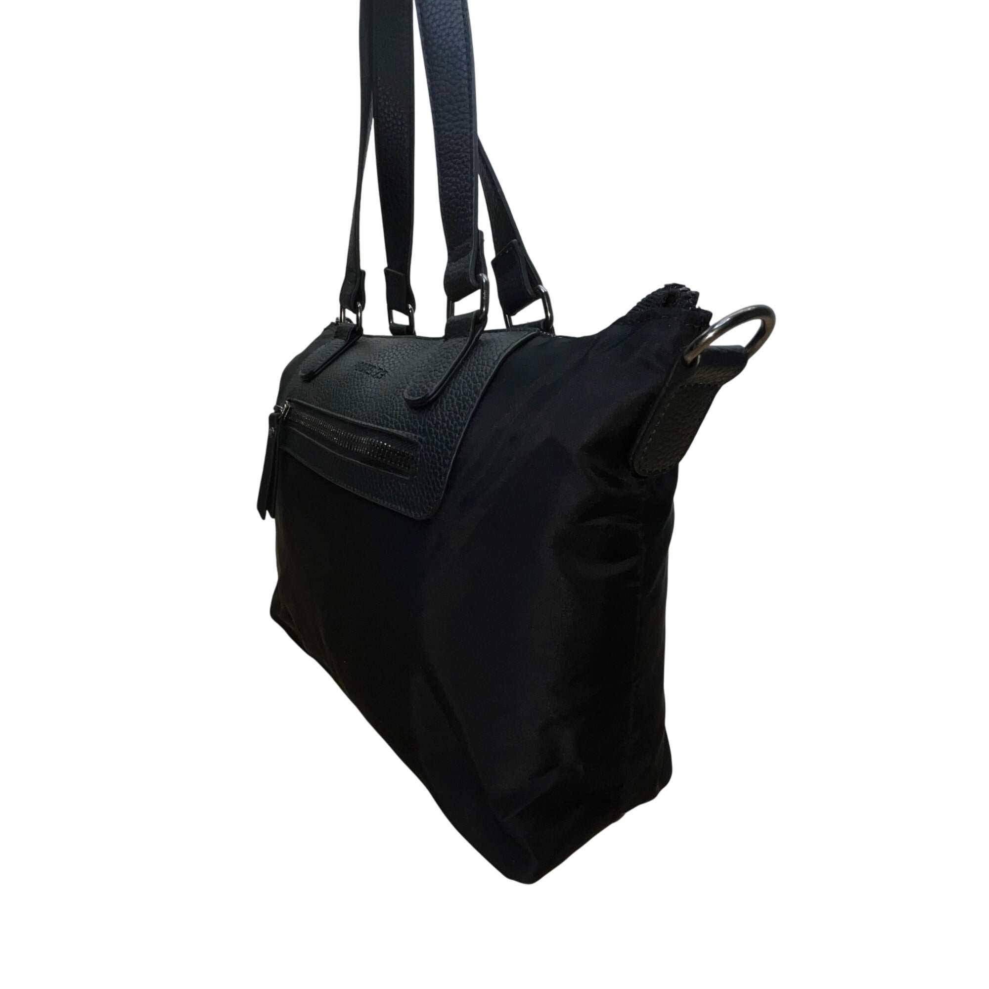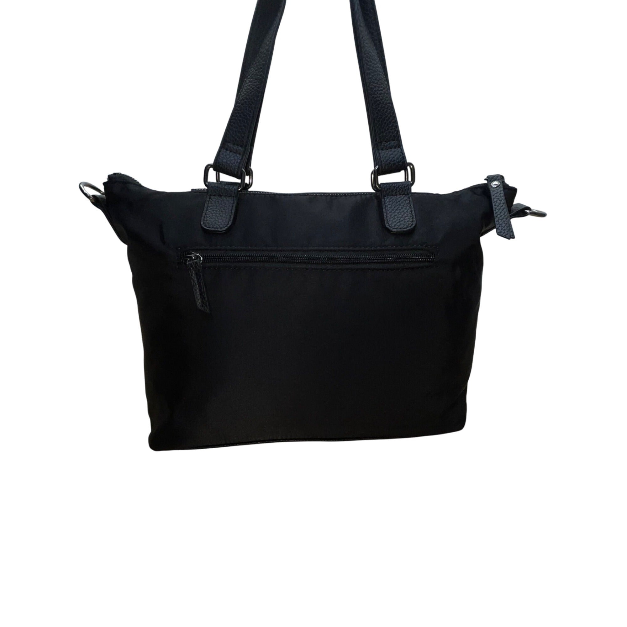 Roots 73 Women’s Black Nylon & Faux Leather With Front Zipper Pocket Tote Bag