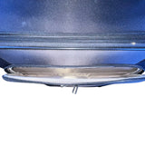 Durable nylon spinner luggage with multiple compartments, expandable capacity, 4-wheel spinner design, and retractable handle for easy mobility.