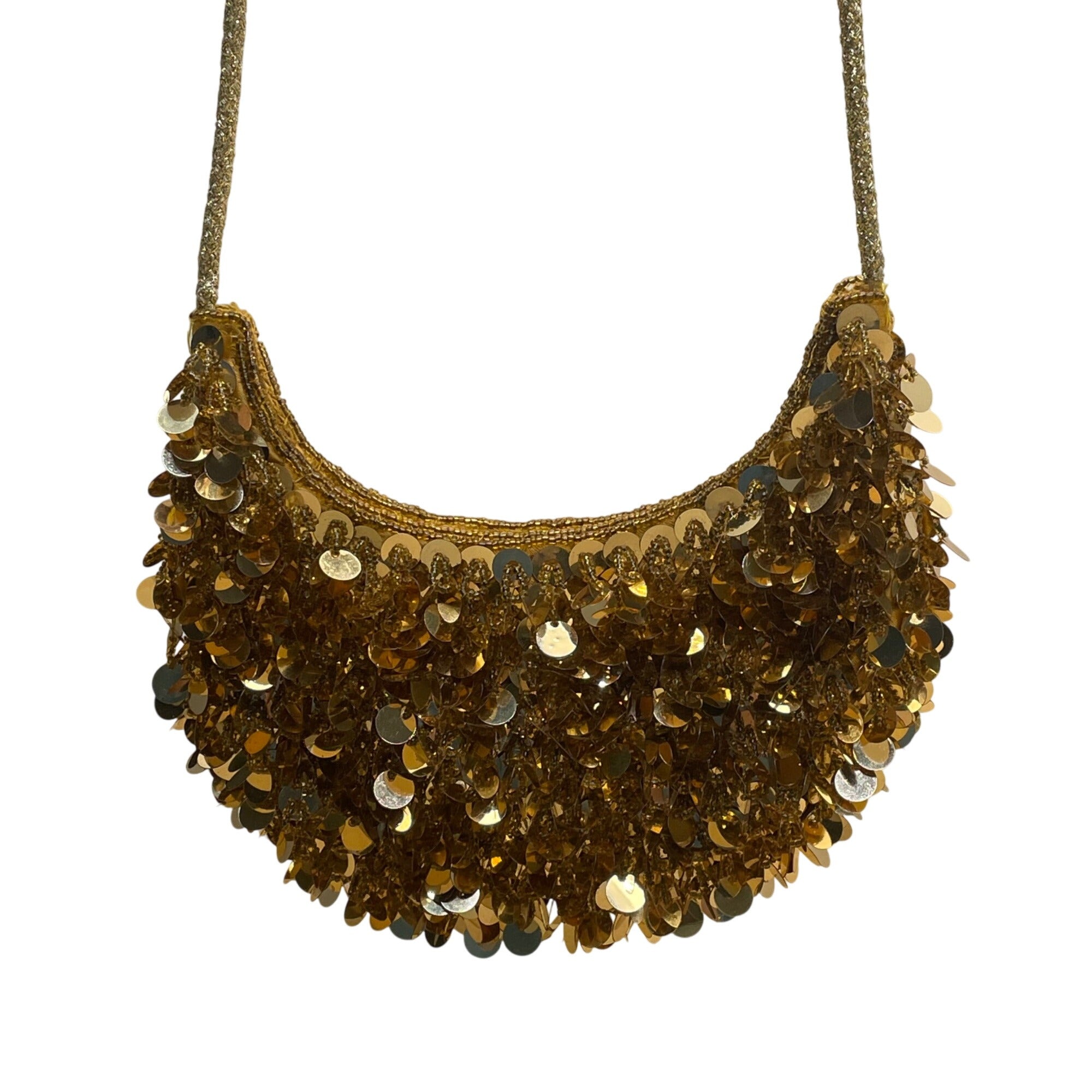 Unbranded Women’s Gold Sequin Beads With Rope Strap Evening Crossbody Bag