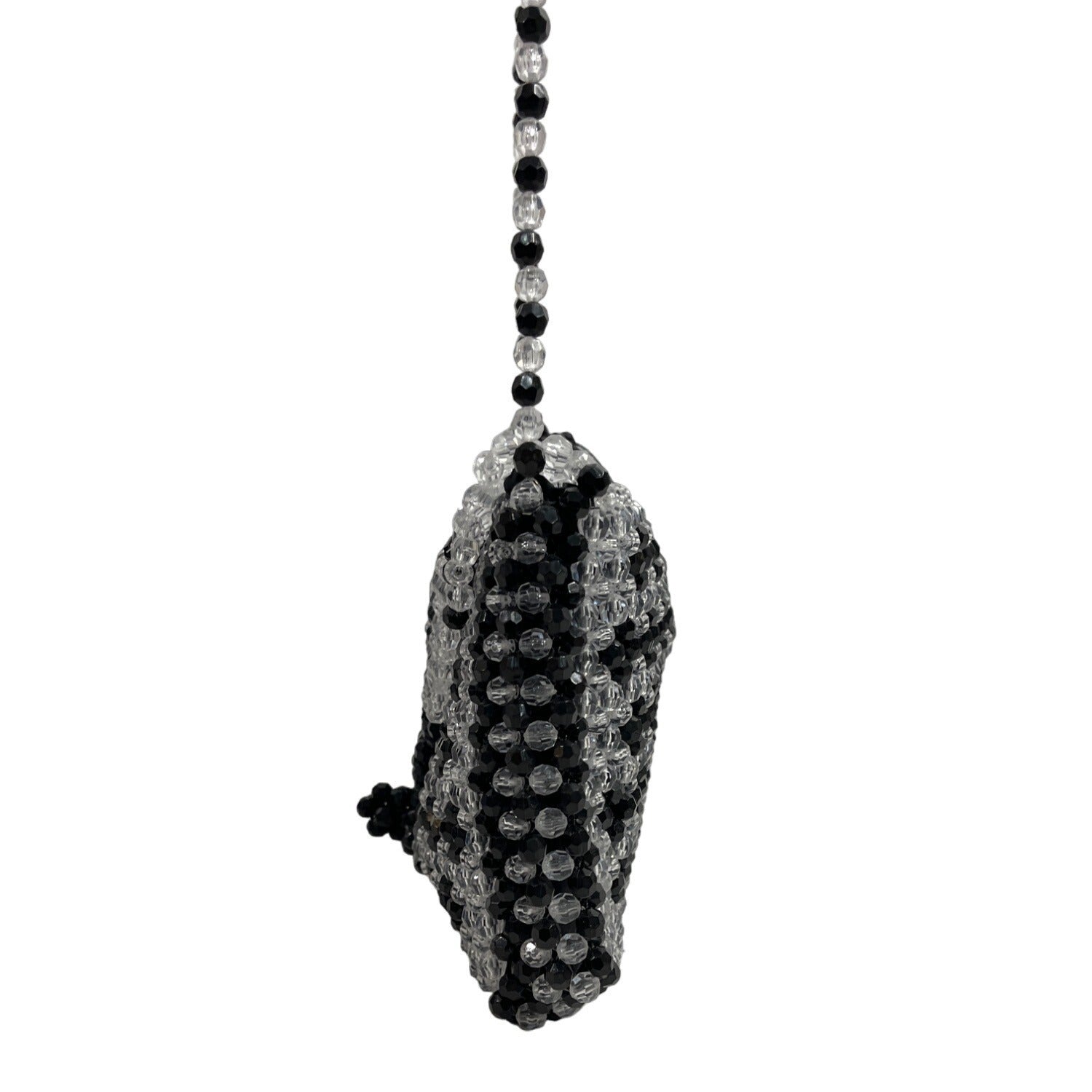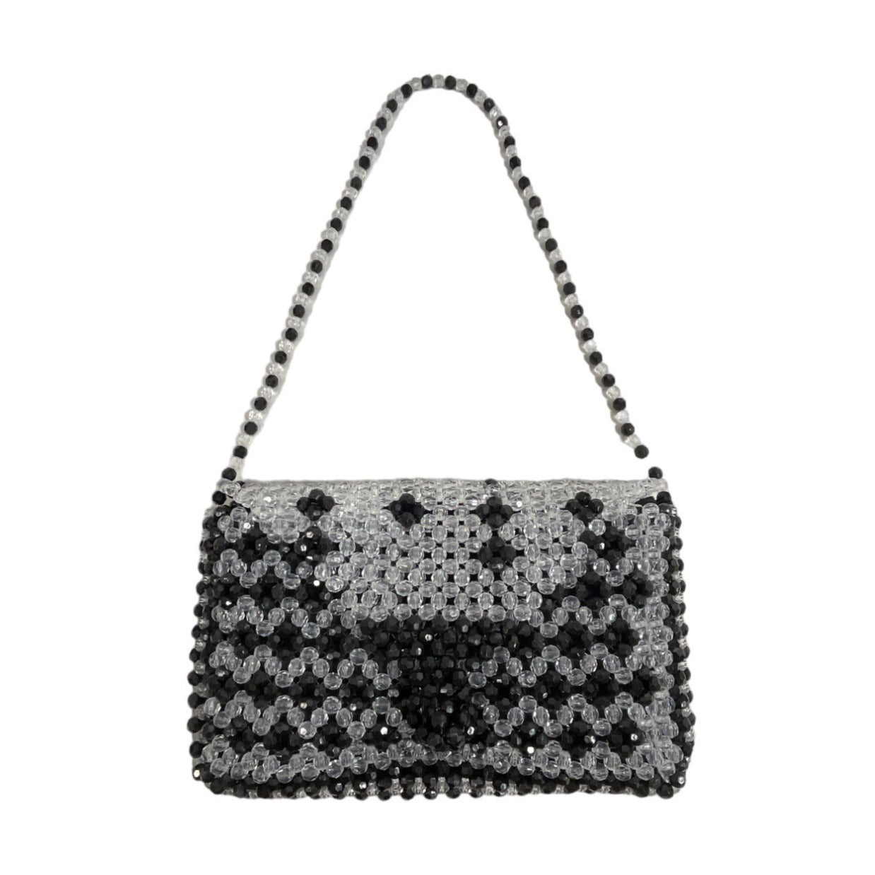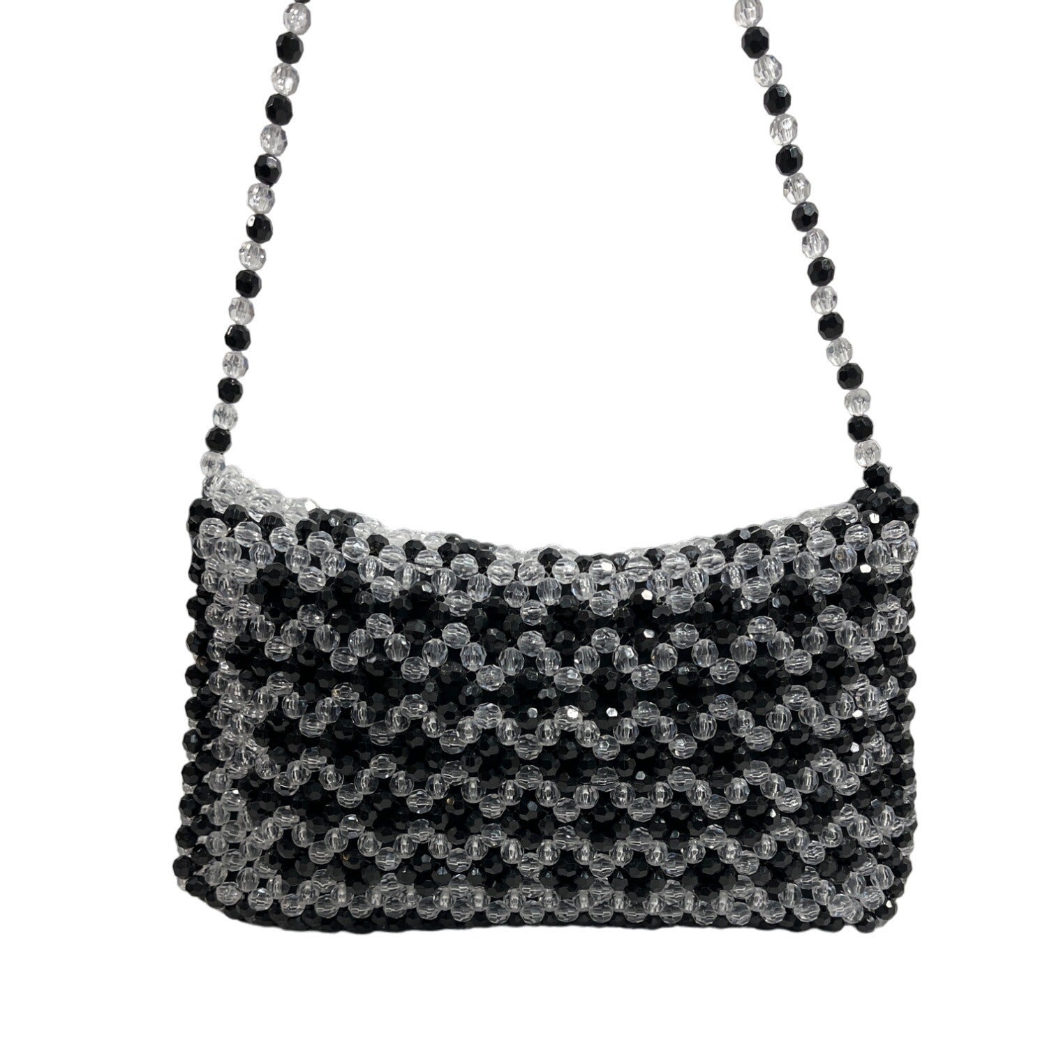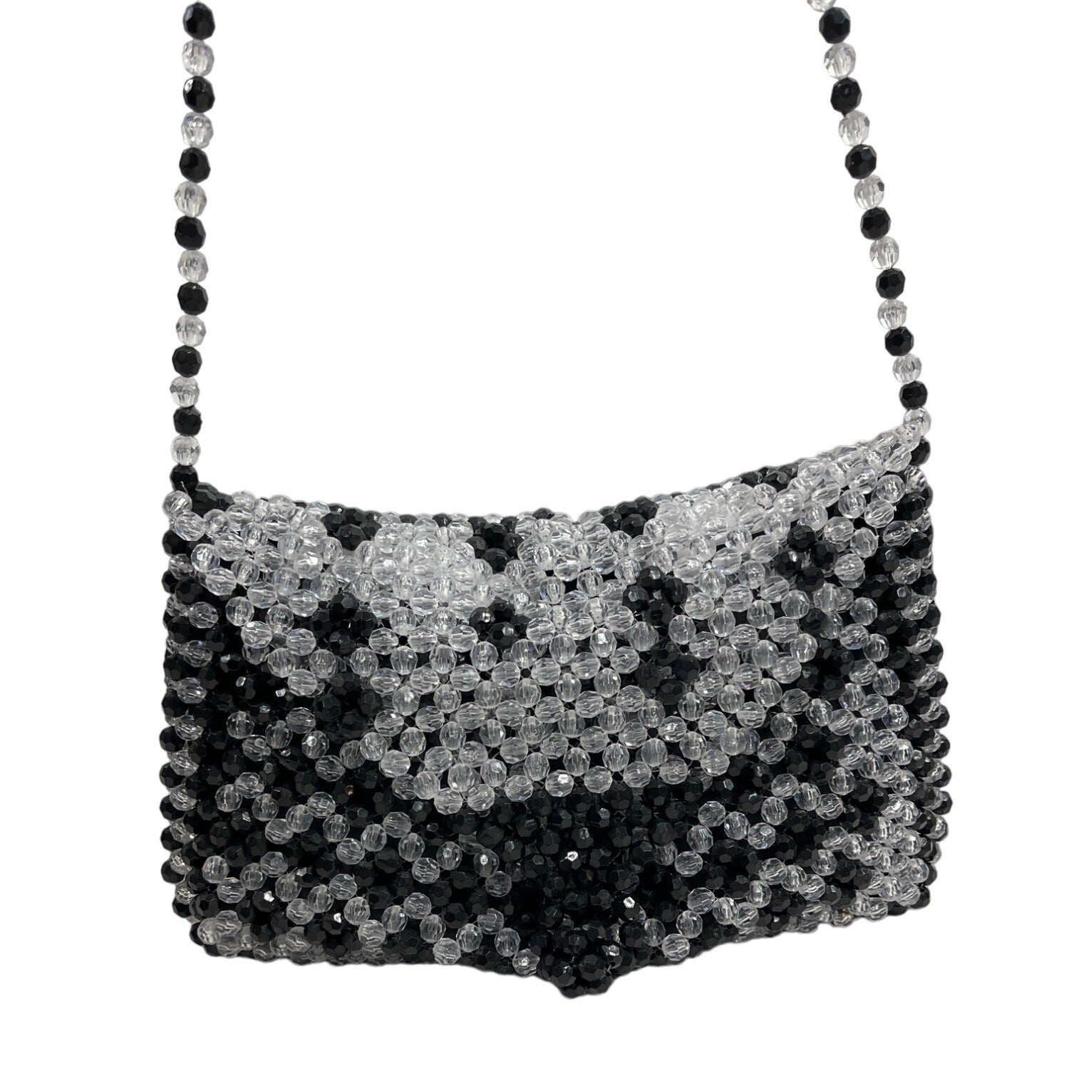 Unbranded Women's Black & White Beaded Shoulder Evening Bag Sz S