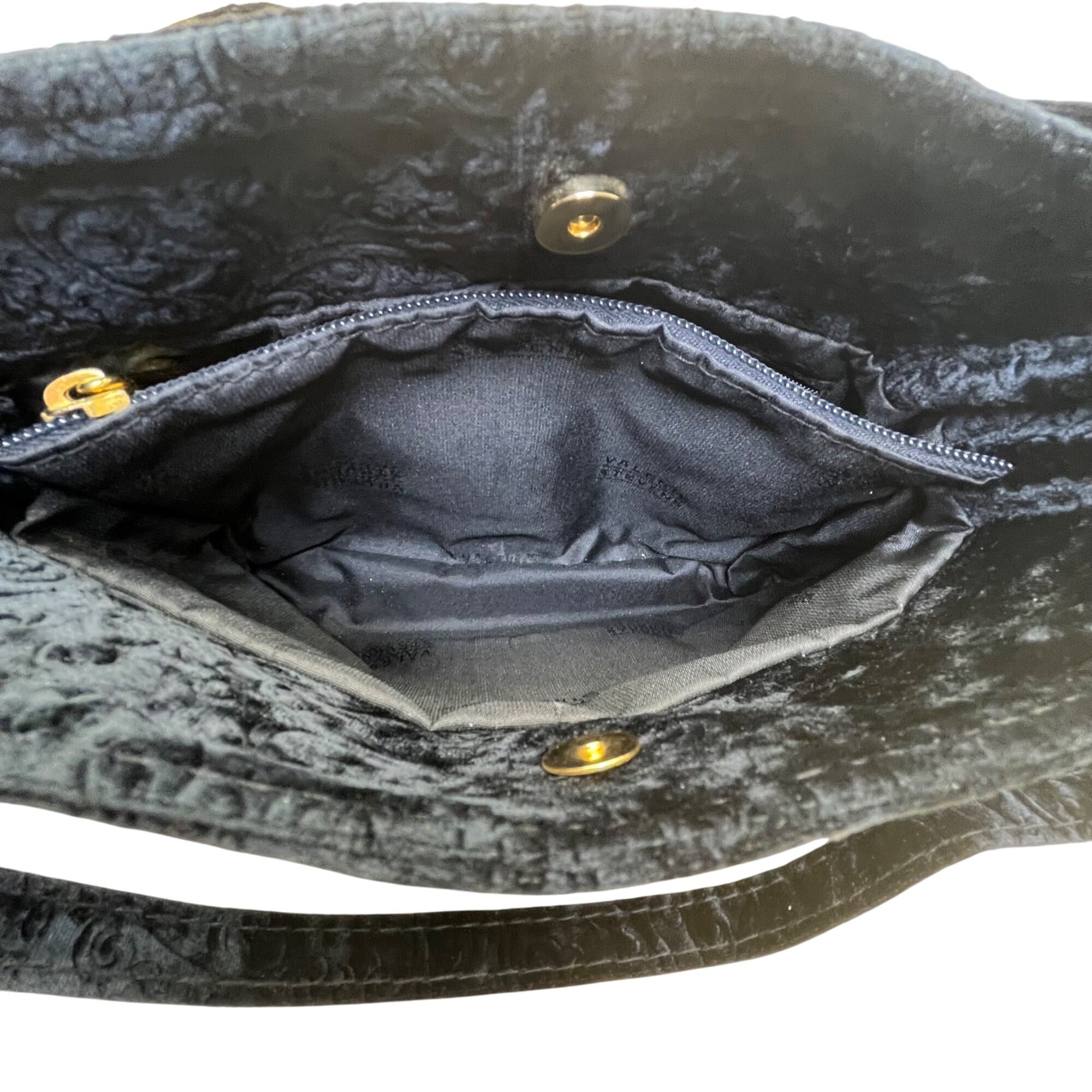Valerie Stevens Women’s Made In Italy Black Velvet Embossed Shoulder Bag
