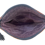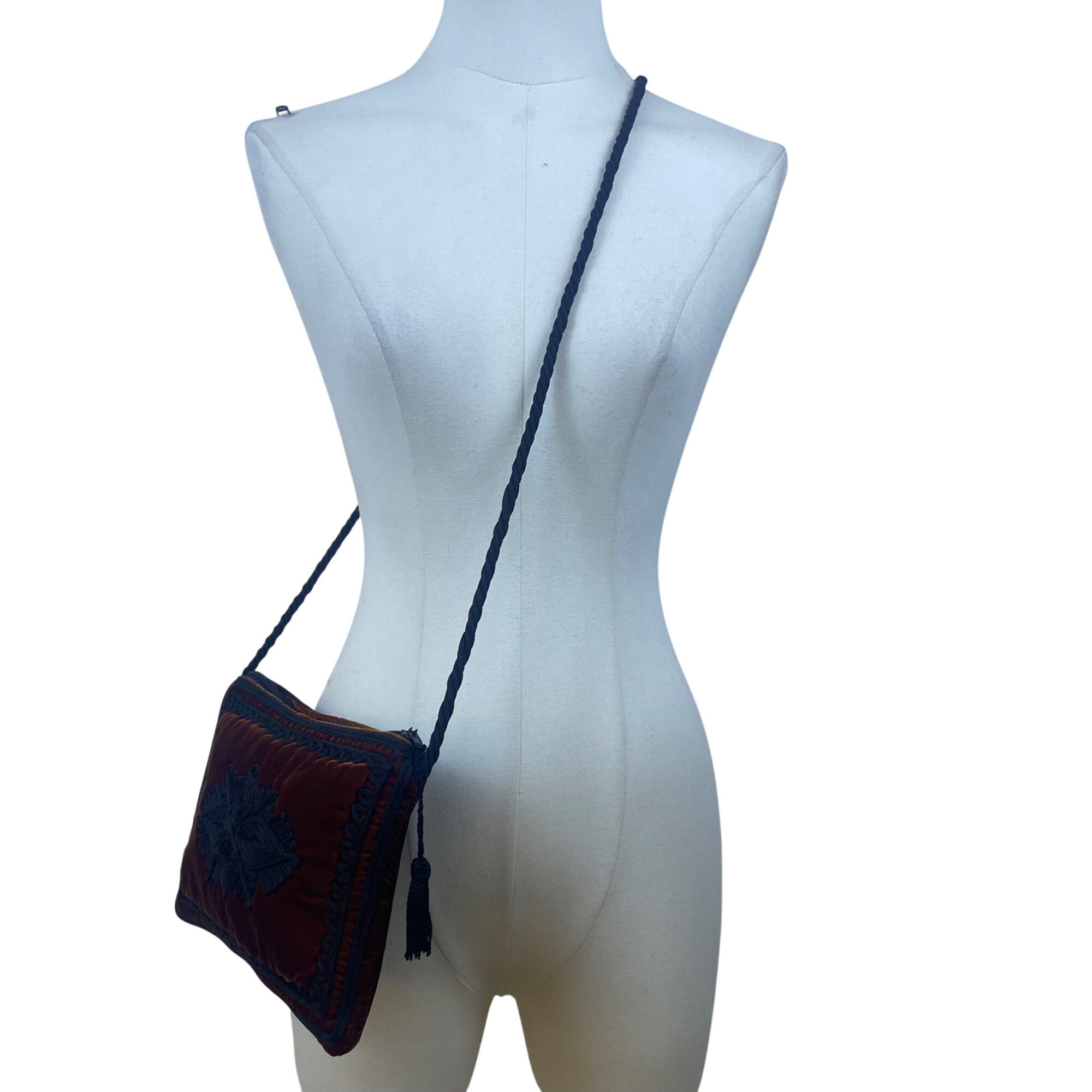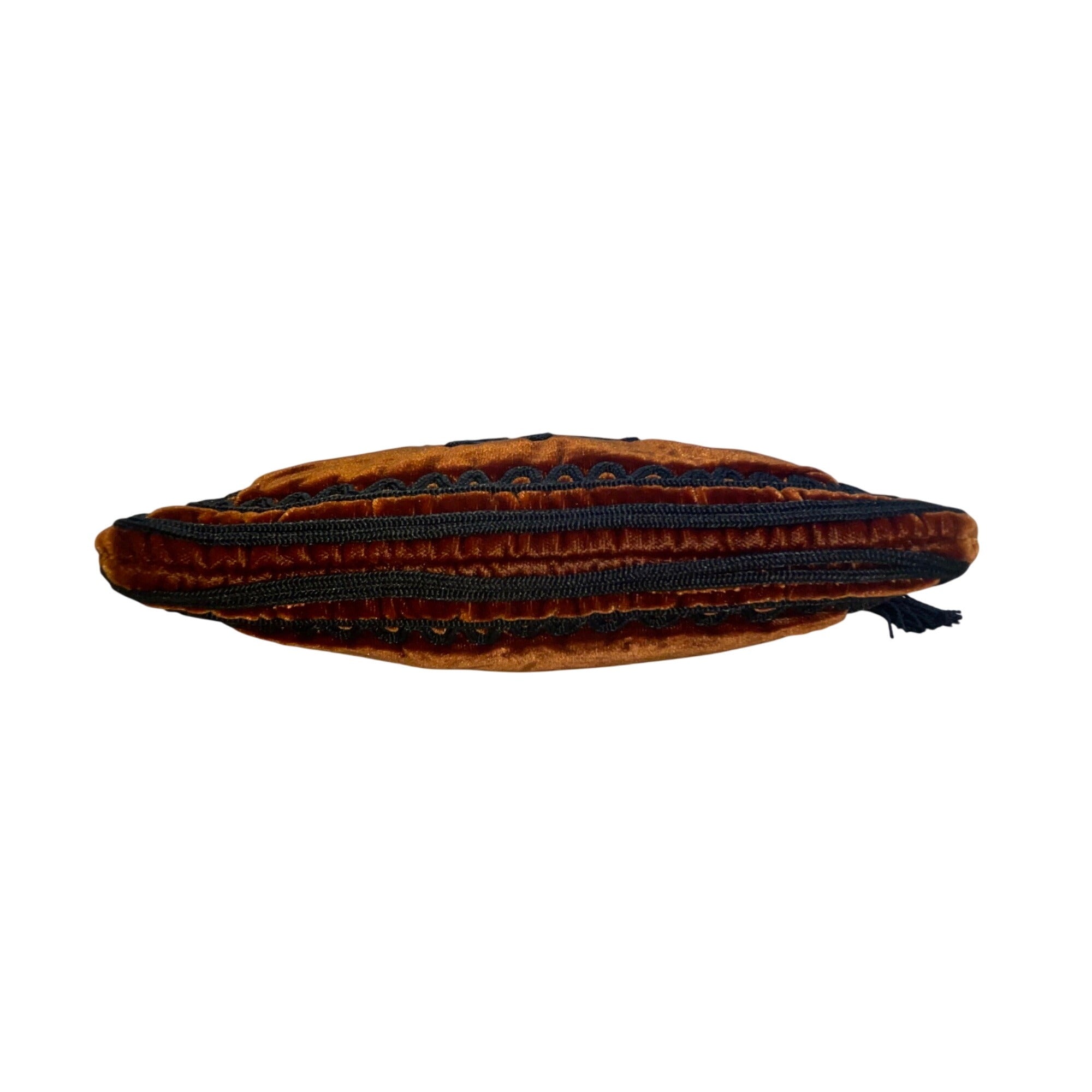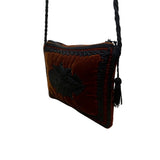 Women’s Orange & Black Velvet Embroidered Tassel Zipper Strap Crossbody Purse