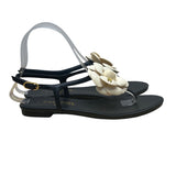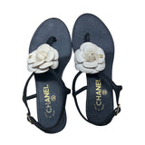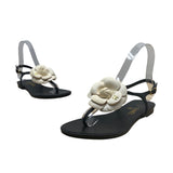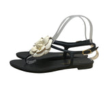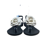 Chanel Women’s Black & White Camellia Thong Sandals Size 37