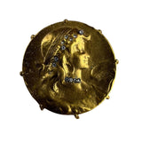 French Art Nouveau Gold Tone Brooch Rhinestone Accents Woman Profile Pin