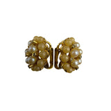 Gold Tone Clip-On Earrings With Faux Pearls & Rhinestones Cluster Design Vintage