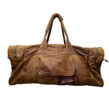 Handcrafted Brown Leather With Zippered Compartments Traveling Duffel Bag Size XL