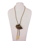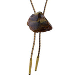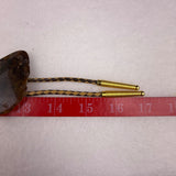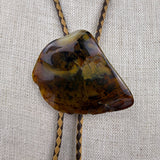 Handcrafted Vintage Braided Leather Stone Bolo Tie Brown Goldtone Agate Rock Pendant