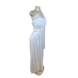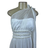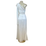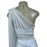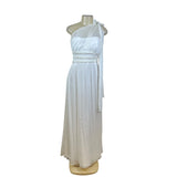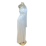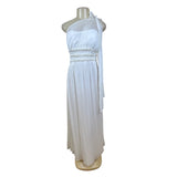 One Shoulder White Chiffon Maxi Dress With Pleated Waistband Detailed