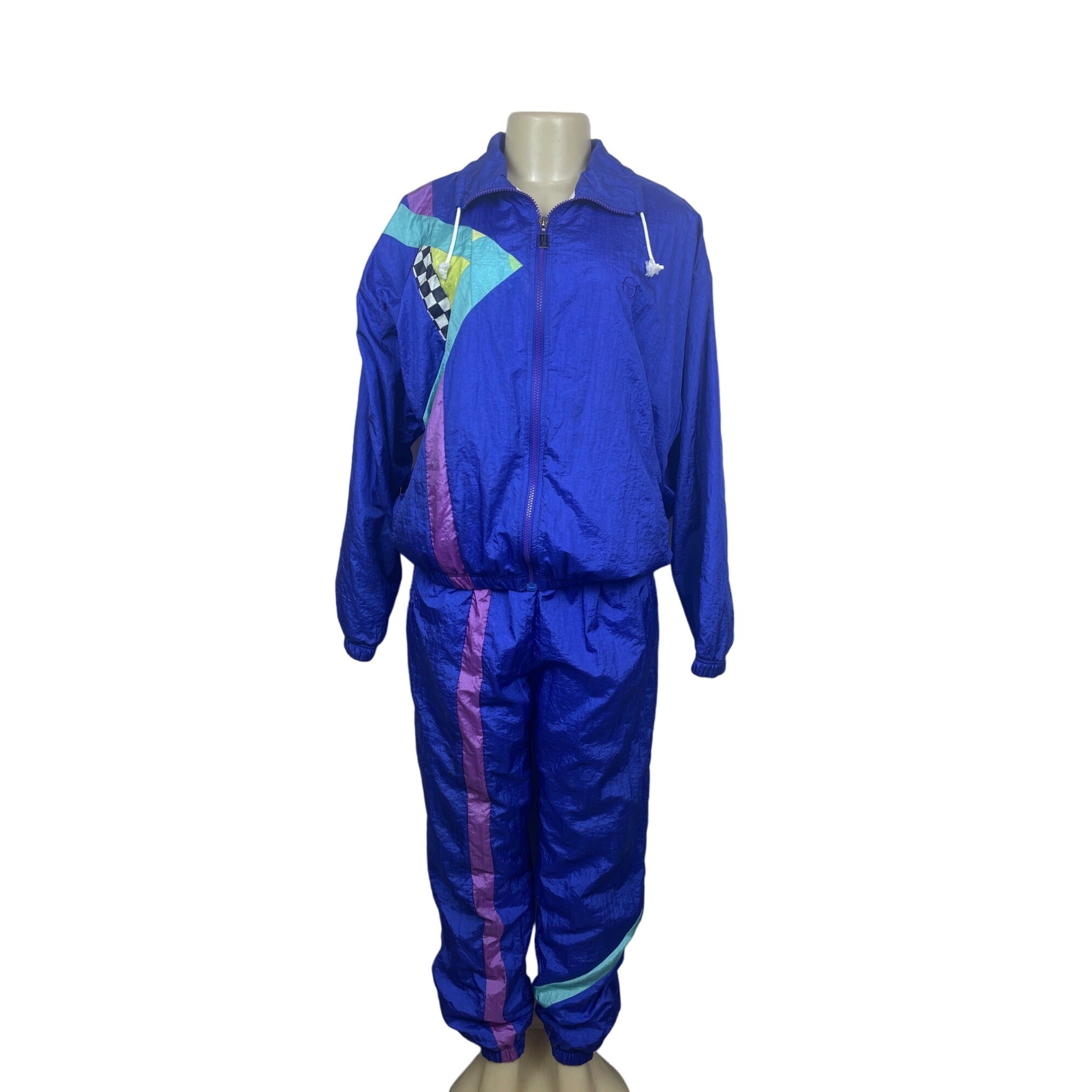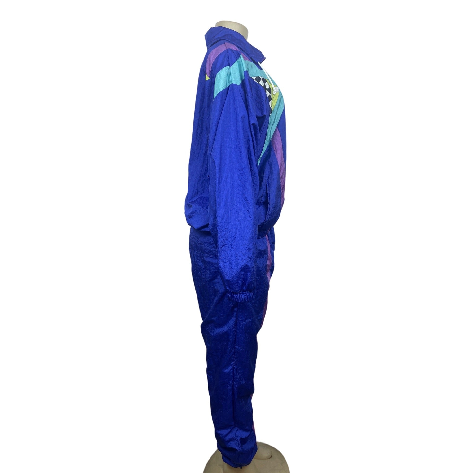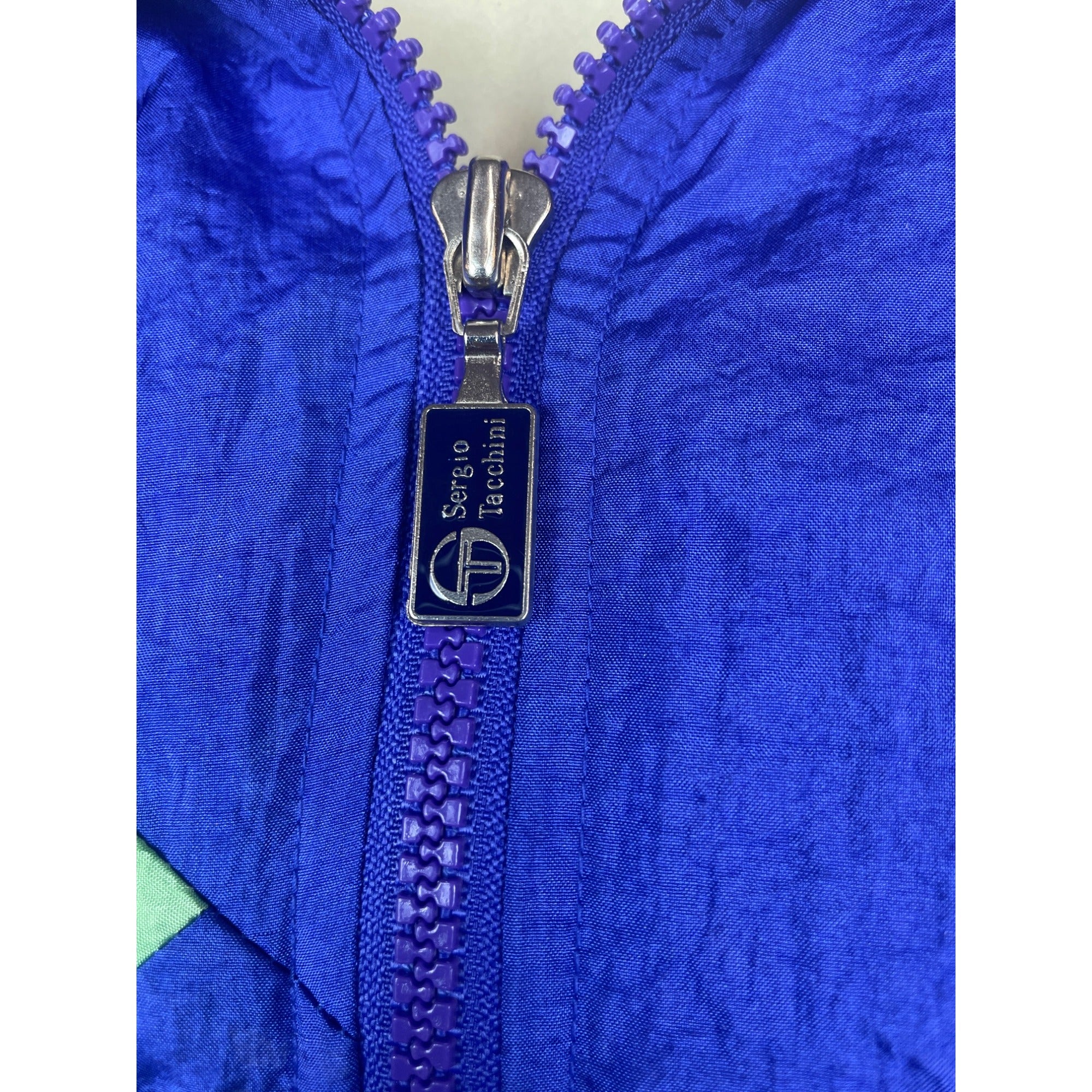Sergio Tacchini Vintage Women’s Bright Blue Nylon Tracksuit Geometric Print 90s Style S