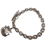 Sterling Silver Viking Ship Charm Bracelet Vintage 7 Inch Elegant Chain Toggle Clasp