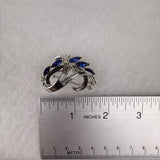 Trifari Vintage Silver Tone Rhinestone Sapphire Blue Crescent Brooch Pin Elegant