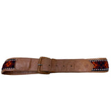 Vintage 1980s Women's Tan Leather & Textile Western Belt With Buckle 35 Inch Handmade