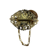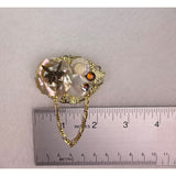 Vintage Gold Tone Filigree Fairy Brooch With Mother Of Pearl & Rhinestone