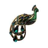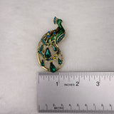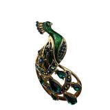 Vintage Gold Tone Peacock Brooch Green Blue Rhinestone Enamel Statement Pin Jewelry