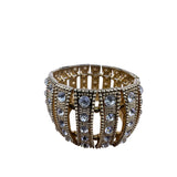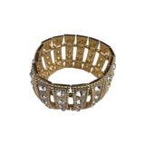 Vintage Gold Tone Rhinestone Cuff Bracelet Wide Statement Elegant Open Design