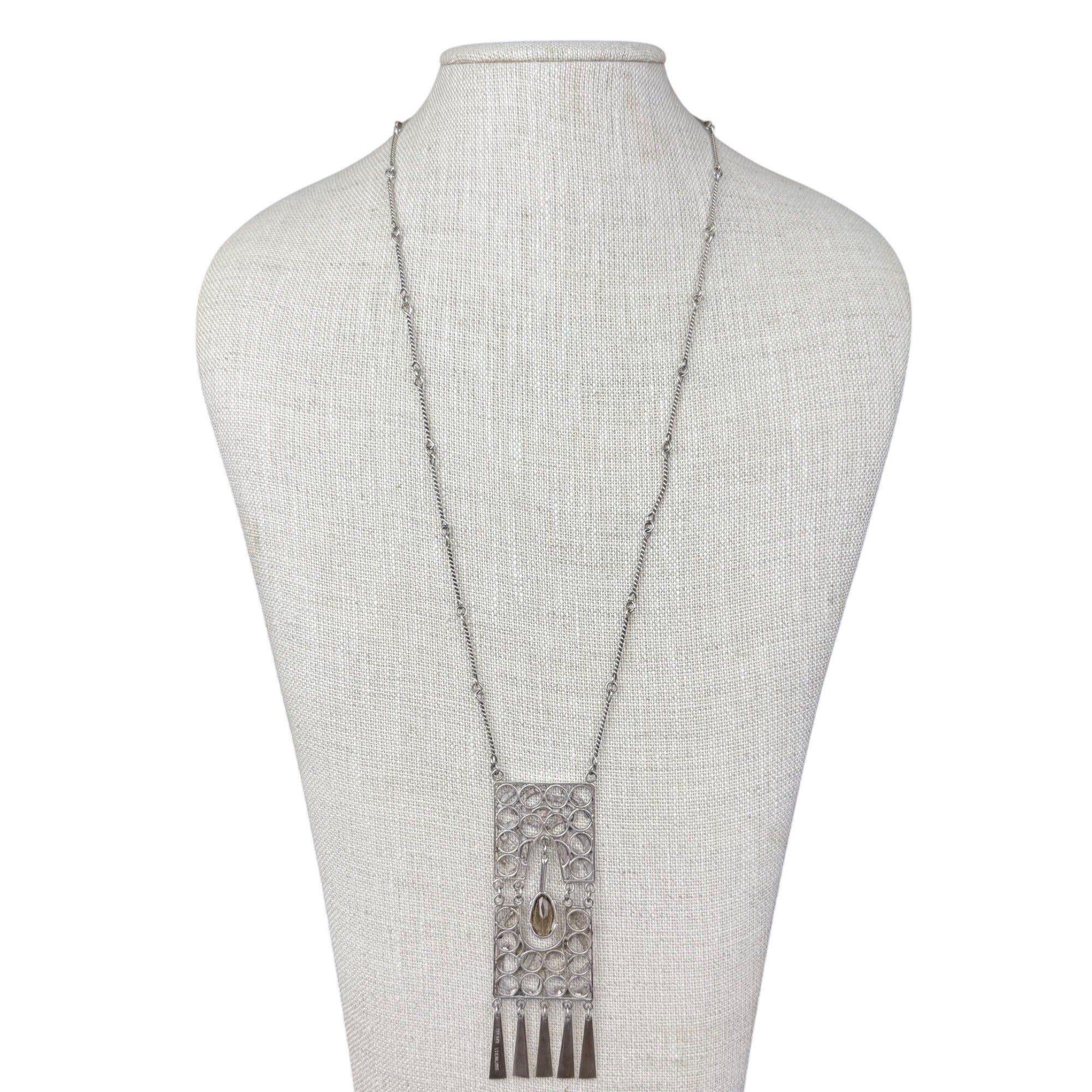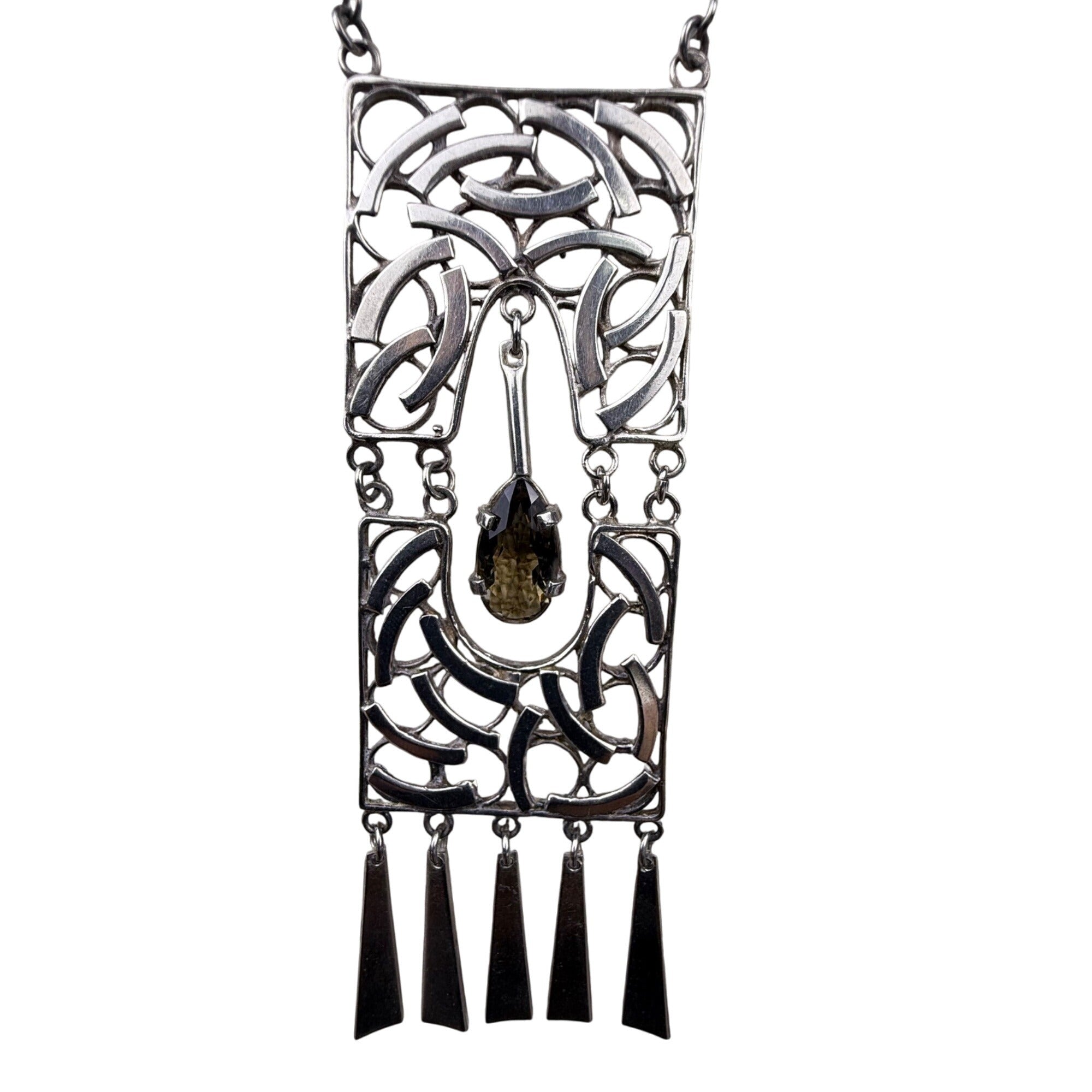 Vintage Israel Sterling Silver Pendant Necklace With Smoky Quartz Detail