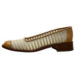 Vintage Joan David Women’s Tan/Brown Leather & Fabric Striped Low Heel Flats Size 7M