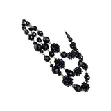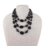 Vintage Multistrand Black Faceted Beaded Necklace Elegant Gold Tone Hook Closure