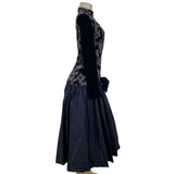 Vintage Nili Martin Women's Black Velvet & Taffeta Gown Dress With Sequins Size 10