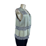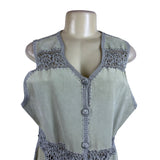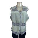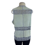 Vintage S.M.H. Women's Green Suede Leather Button Up Vest With Crochet Trim Size XL