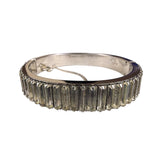 Vintage Silver Tone Women's Hinged Bracelet With Baguette Cut Glass Accents