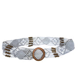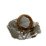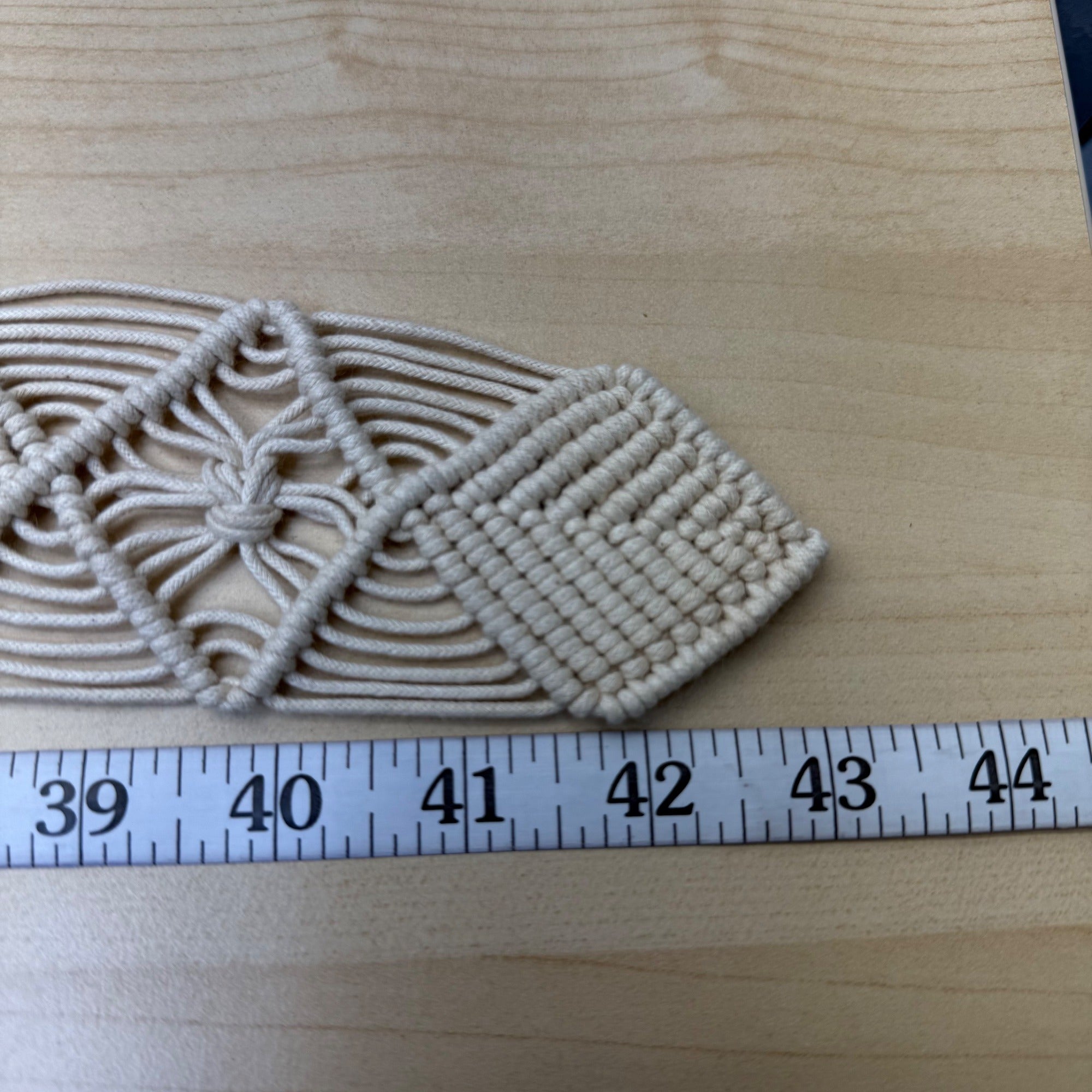 Vintage Tan Macrame Belt With Wooden Beads & Round Buckle Handmade Lightweight