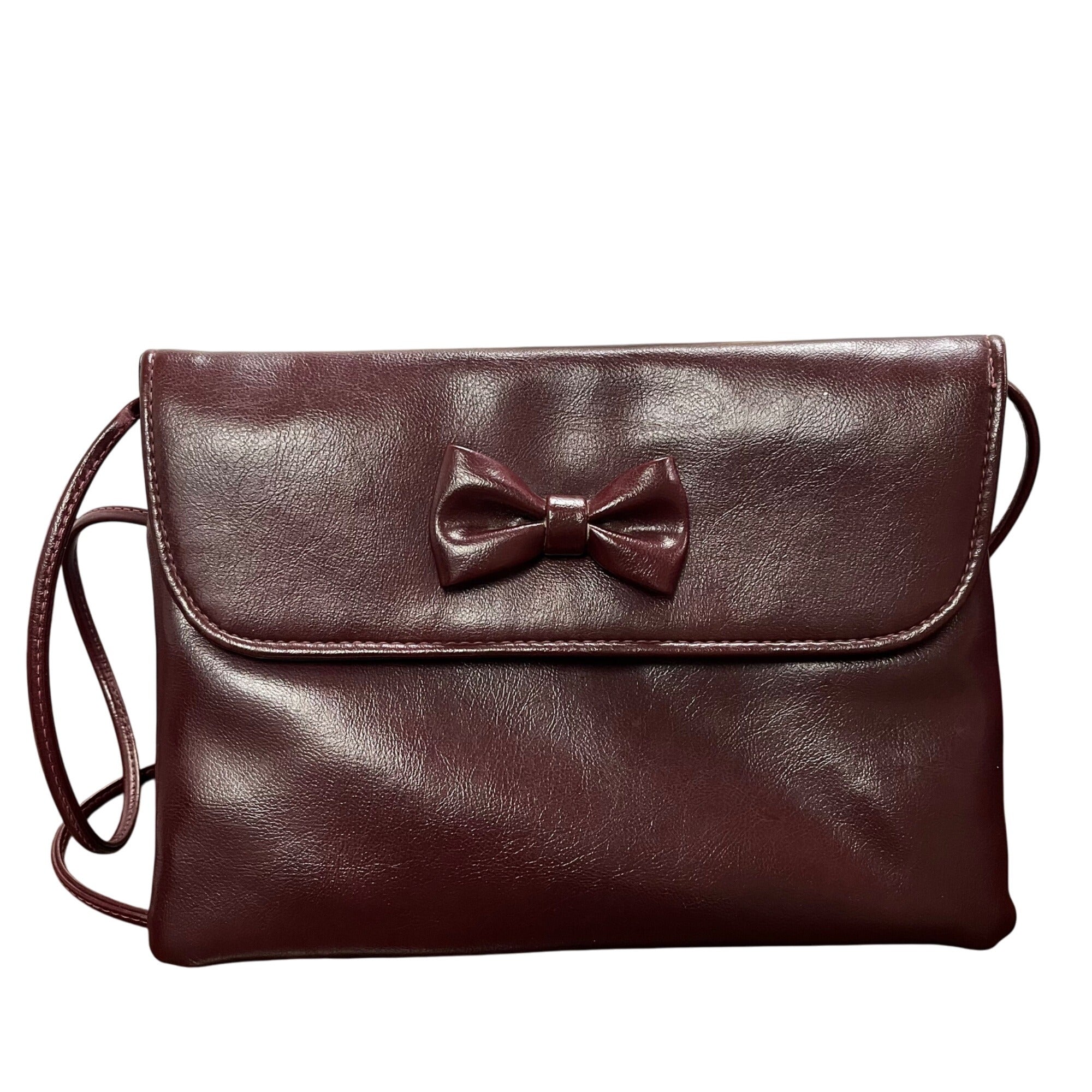 Vintage Womens Burgundy Faux Leather Crossbody Bag With Bow Accent