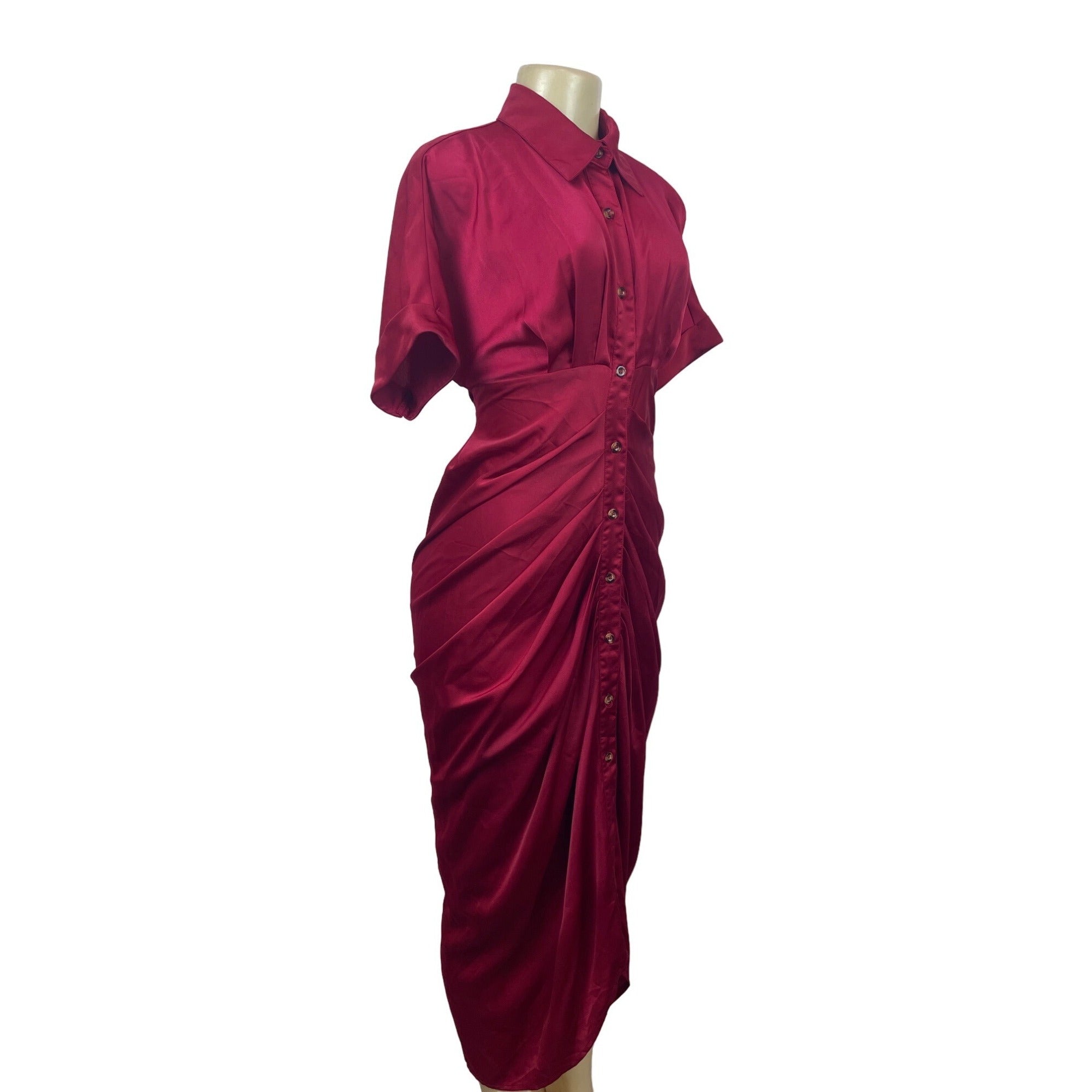 Vintage Women's Red Button Up Collar Shirt Dress Size S