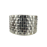 Wide Silver Tone Vintage Metal Bracelet Woven Design Statement Piece Antique Jewelry