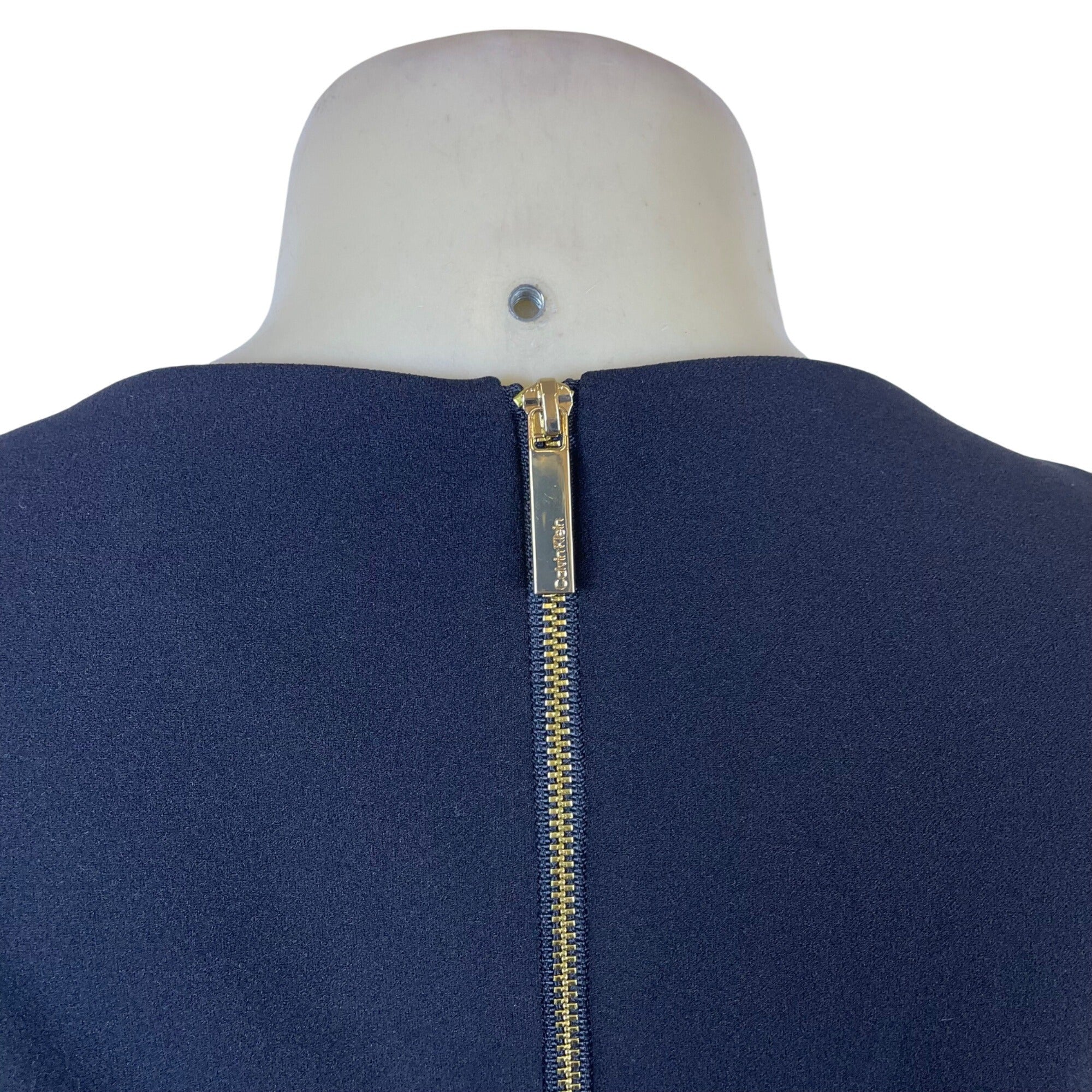 This Calvin Klein Women's Black Polyester Dress is a classic piece with a flattering silhouette. Featuring short sleeves, a belted waist, a ruffle hem, and a rear zip closure with a charming bow detail at the back. Made from lightweight and durable polyester, it offers comfort and style. Perfect for various occasions. Excellent pre-owned condition with no flaws or signs of wear.