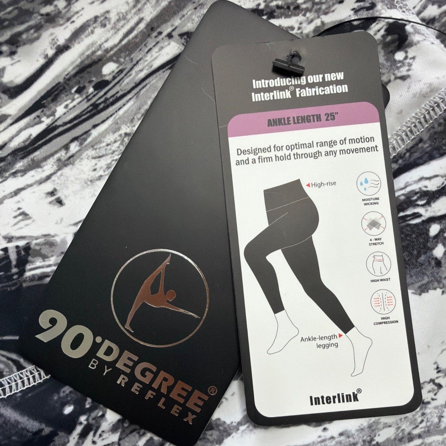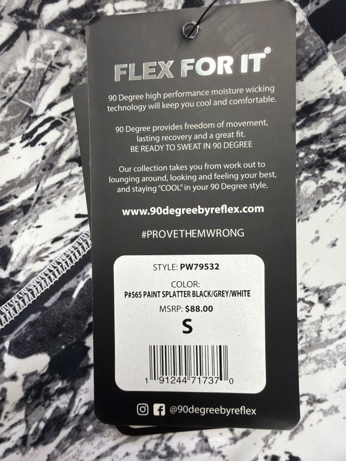 90 Degree By Reflex Womens Black/White High-Rise Ankle Leggings Sz S