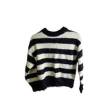 A New Day Womens Black/White Fuzzy Striped Pullover Sweater Size XS Soft Knit