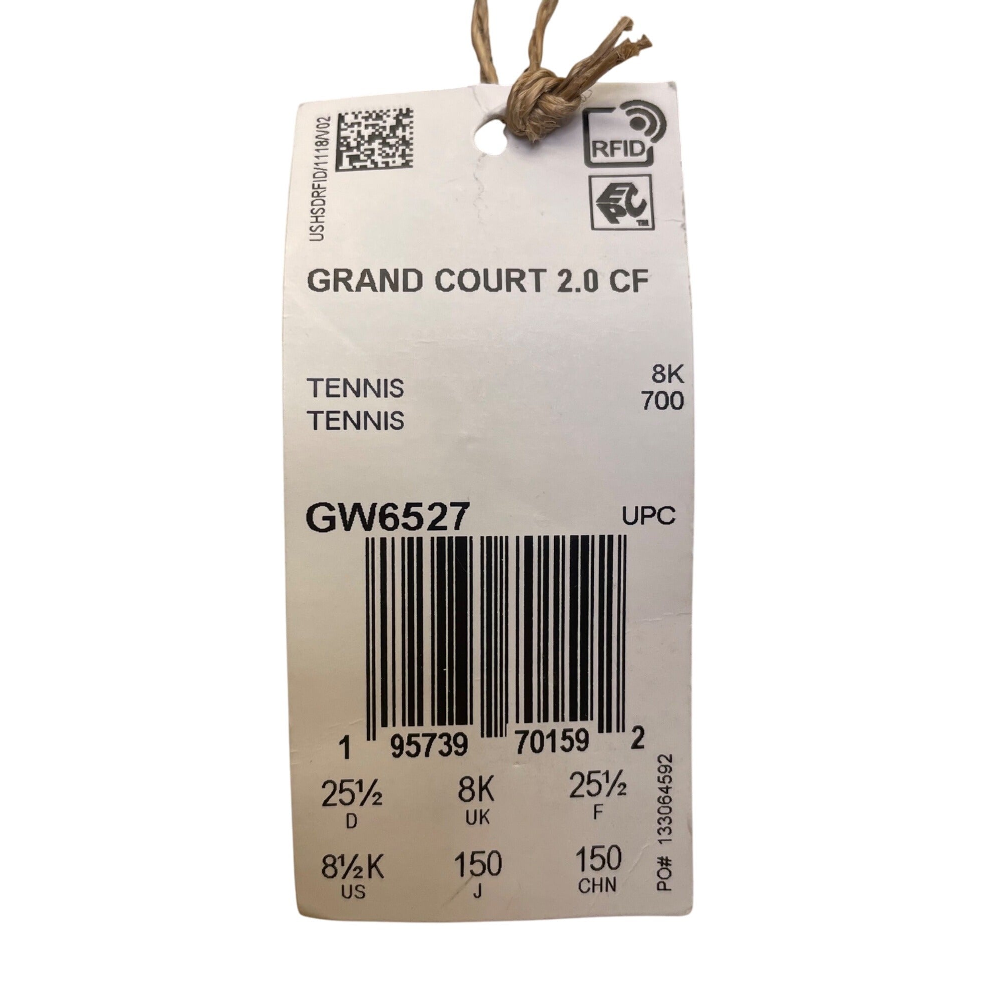 Adidas Kids White/Black Synthetic Adhesive Grand Court 2.0 CF Sneakers Size 8.5K