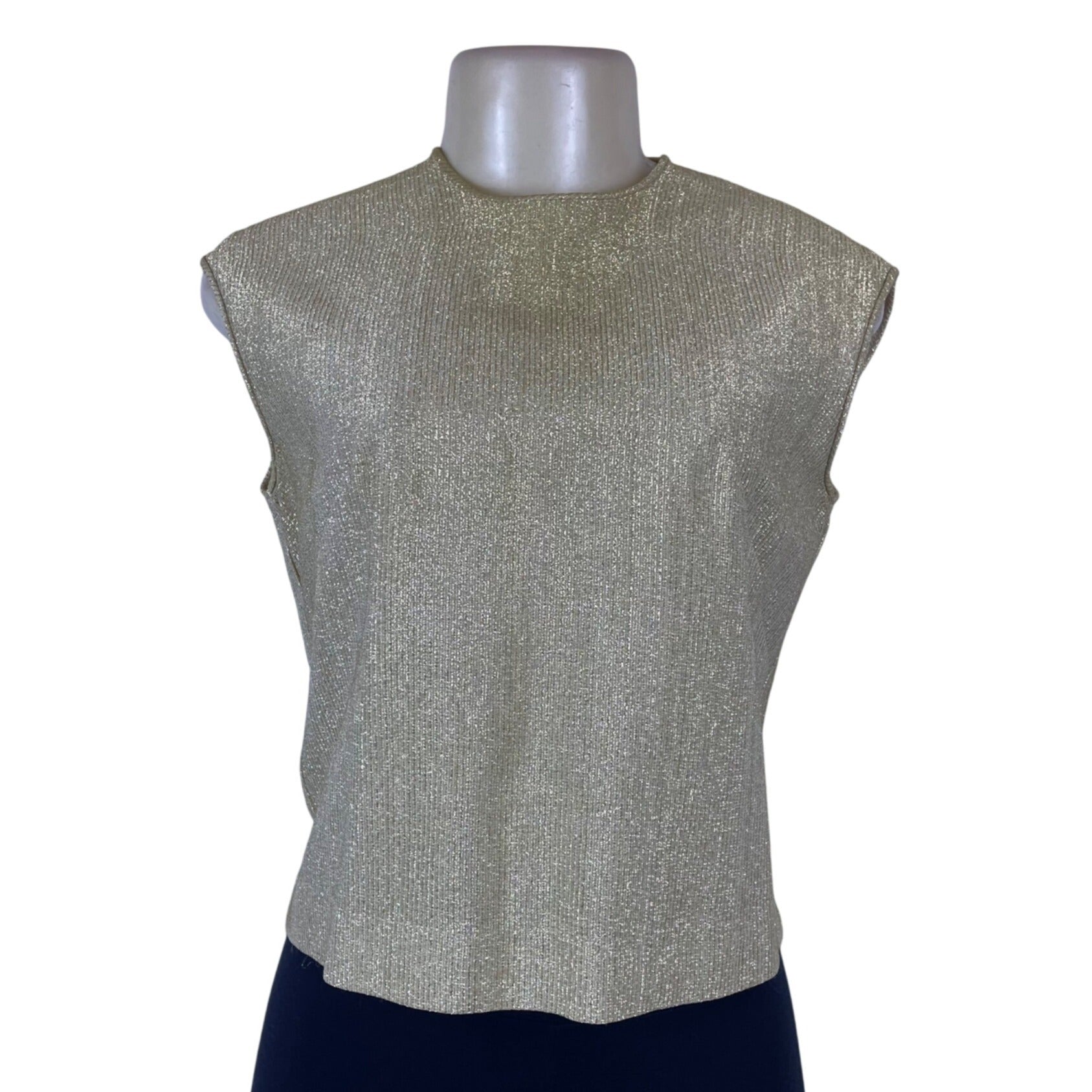 Alsada Womens Metallic Gold Sleeveless Back Button Blouse Vintage Size 10/30